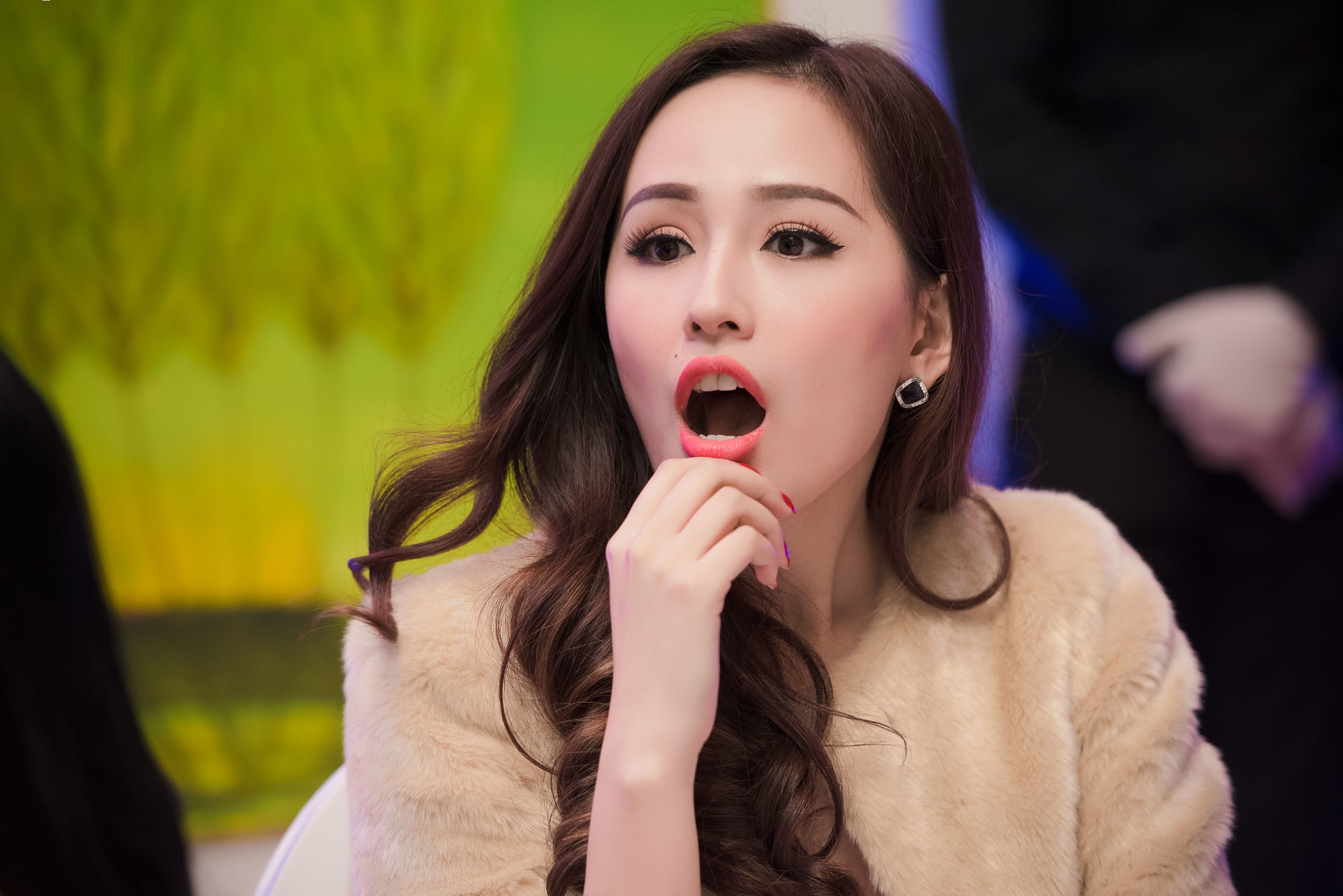 Biểu cảm hài hước của Mai Phương Thúy trong buổi đấu giá các sản phẩm có giá trị để gây quỹ cho chương trình. |