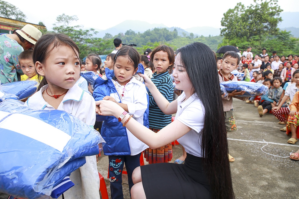 Hoa hậu Ngọc Anh tặng áo ấm cho trẻ em Hà Giang