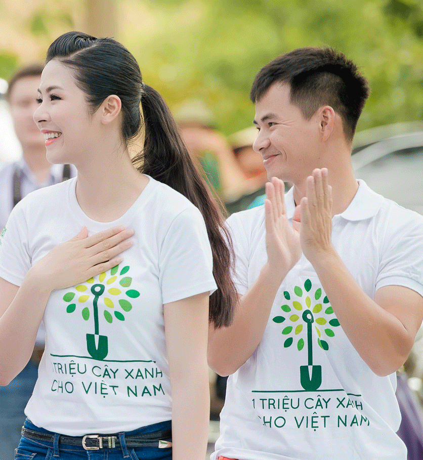 | Sáng 26/7, Ngọc Hân và Xuân Bắc cùng tham gia lễ phát động trồng 5.612 cây xanh tại khu di tích lịch sử Ngã ba Đồng Lộc với vai trò Đại sứ thiện chí của Quỹ một triệu cây xanh cho Việt Nam. |