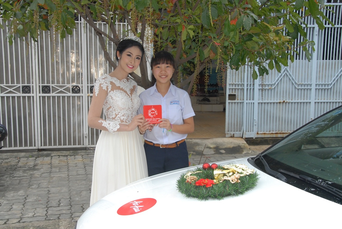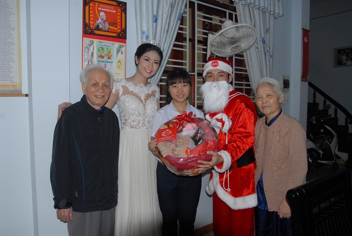 Trong không khí se lạnh của thành phố Đà Nẵng, sáng 24/12, chuyến xe đặc biệt của hãng hàng không AirAsia đã đưa hoa hậu Ngọc Hân và ông già Noel bất ngờ ghé thăm nhà cô bé Nguyễn Miên Thảo, mang theo tấm thiệp Giáng sinh mà chị Trần Cúc Hoa - mẹ bé đã nhờ trao tặng cho con gái của mình với lời chúc ý nghĩa: “Chúc con gái luôn chăm ngoan, học giỏi, yêu thương và quan tâm đến mọi người”.