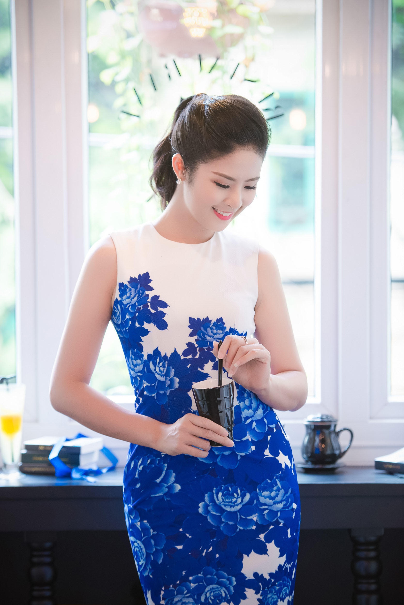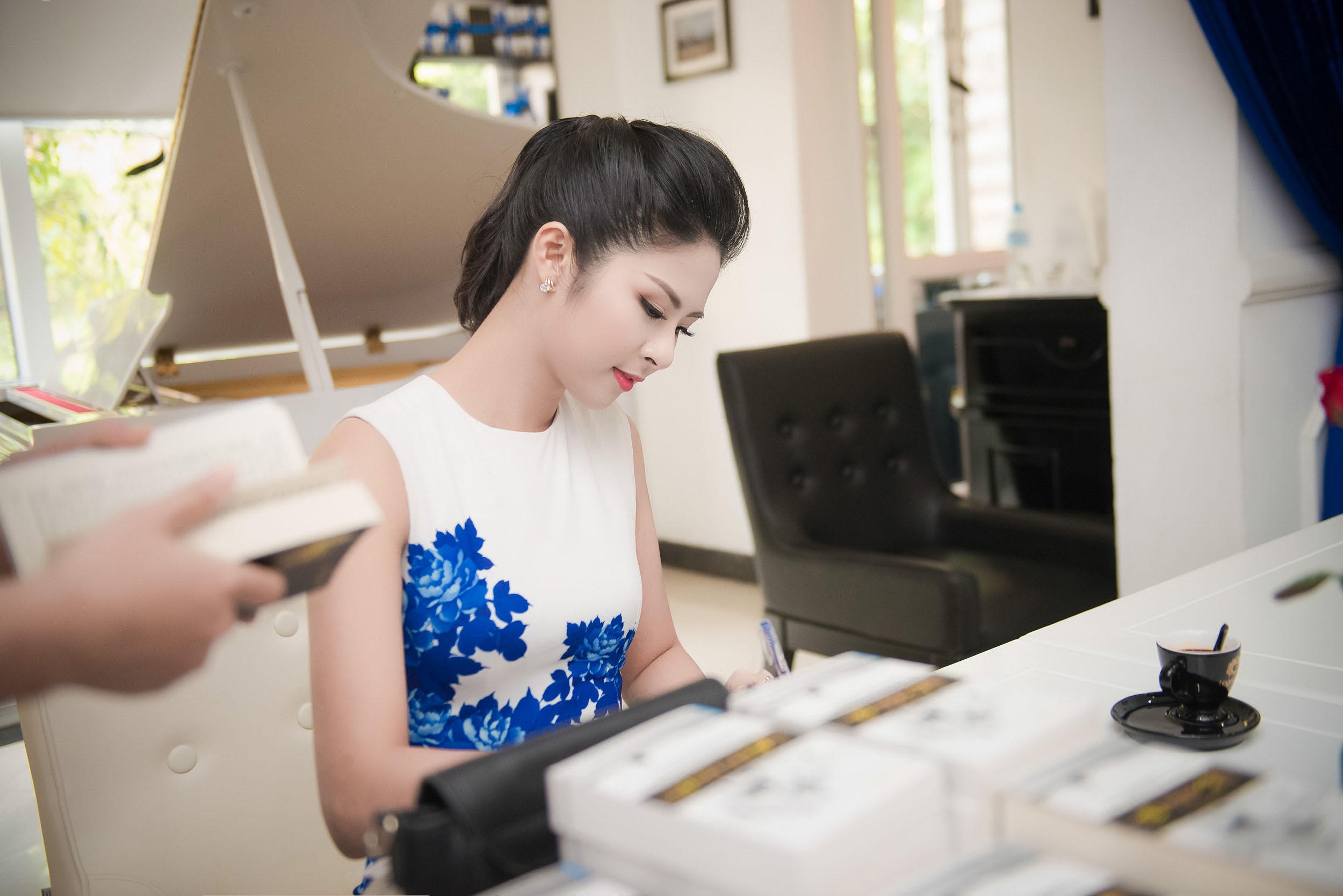 | Ngọc Hân duyên dáng trong buổi ký tặng sách cho người hâm mộ. |