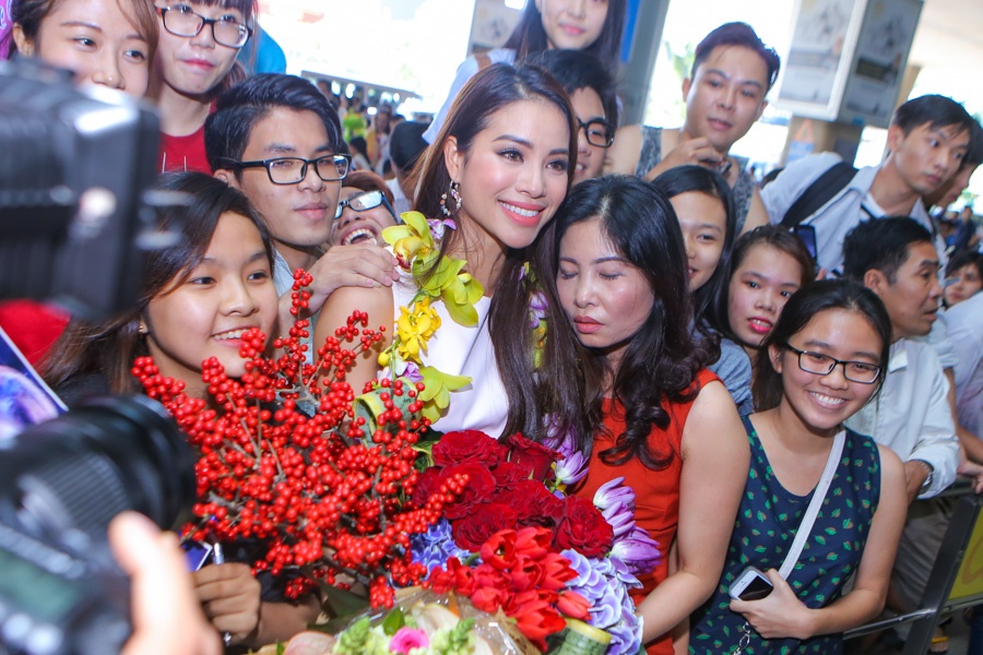 Về nước sau 3 tuần tranh tài ở Hoa hậu Hoàn vũ thế giới, đại diện nhan sắc Việt Nam được chào đón nồng nhiệt khi vừa xuất hiện tại sân bay Tân Sơn Nhất.