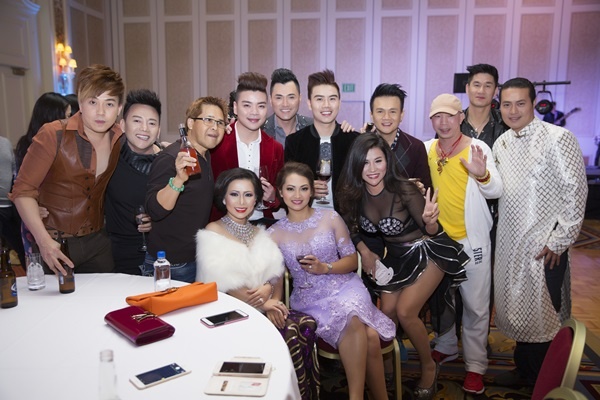 Hoa hậu người Việt thế giới Brandy Ngô (váy đen) cũng là một trong những giám khảo của cuộc thi. Ca sĩ Trish Lương (bìa phải) từng gây ấn tượng khi tham gia Vietnam Idol, The Voice, The Winner Is tại Việt Nam, cô nhận được tình cảm của khán giả khi tham gia trình diễn đêm chung kết với ca khúc sôi động Bang Bang Boom Boom cùng vũ công Hollywood. Ca sĩ Thùy Vân (cạnh Minh Chánh) tới chúc mừng đêm tiệc. |
