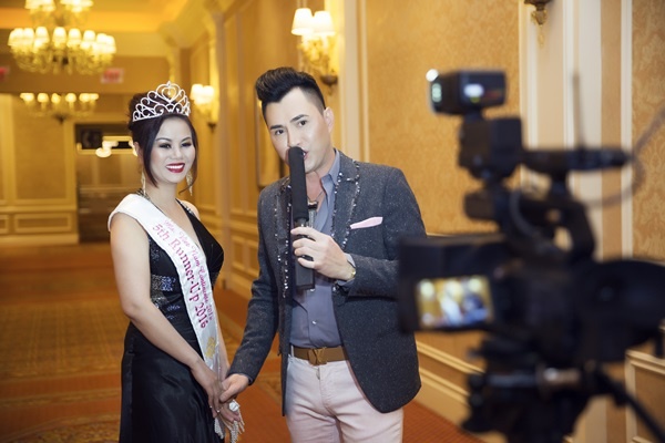Hoa hậu Phu nhân Toàn cầu 2015 Kristine Thảo Lâm trả lời phỏng vấn. Chị cũng là một trong những thành viên BGK 2 năm liền của cuộc thi. |