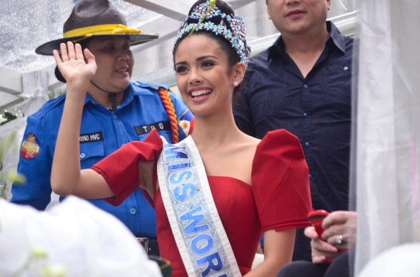 | Megan Young chào người dân Philippines sau khi trở về từ cuộc thi Hoa hậu thế giới ở Bali, Indonesia hồi tháng 9 năm ngoái. |