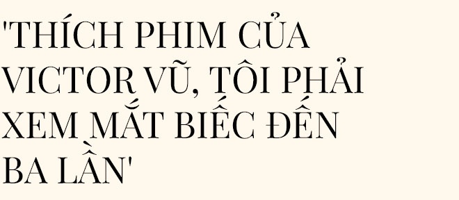 - Tôi ấn tượng nhất với những bộ phim do Victor Vũ làm đạo diễn, và hy vọng sớm được hợp tác cùng anh. Những tác phẩm của anh luôn đậm chất điện ảnh, cảnh phim, màu phim cũng rất đẹp, dễ cảm nhận, dễ hiểu về các nhân vật.