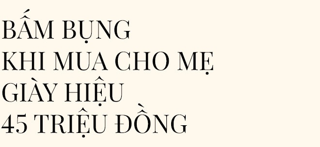 Món đồ hiệu đầu tiên tôi mua là đôi giày Saint Laurent 45 triệu đồng tặng mẹ vào dịp 8/3. Nhìn mẹ vui khi nhận món quà đó, tôi hạnh phúc không thể tả được.