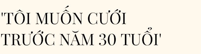 - Chắc chắn tôi muốn lấy chồng trước tuổi 30 nếu tìm được đối tượng thích hợp, còn không phải chờ đợi. Tôi không vội đâu nhưng nếu hơn 30 mới lập gia đình thì đã lớn tuổi lắm rồi. Nói chung, vạn sự tùy duyên.