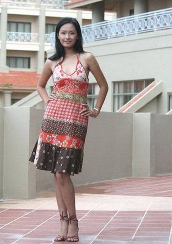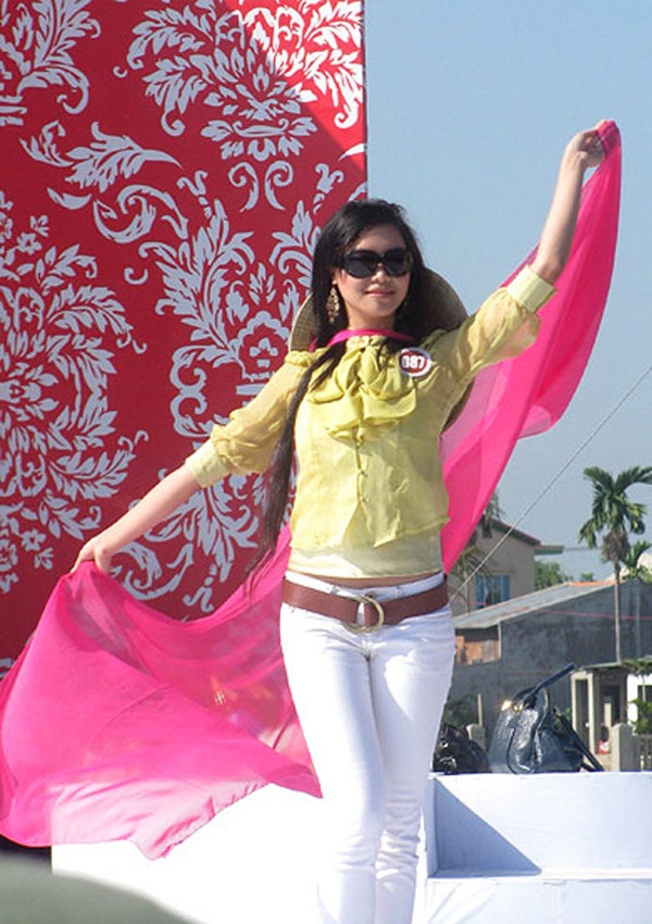 | Thùy Dung tạo dáng có phần quê mùa khi dự thi Hoa hậu Việt Nam tại Hội An. |