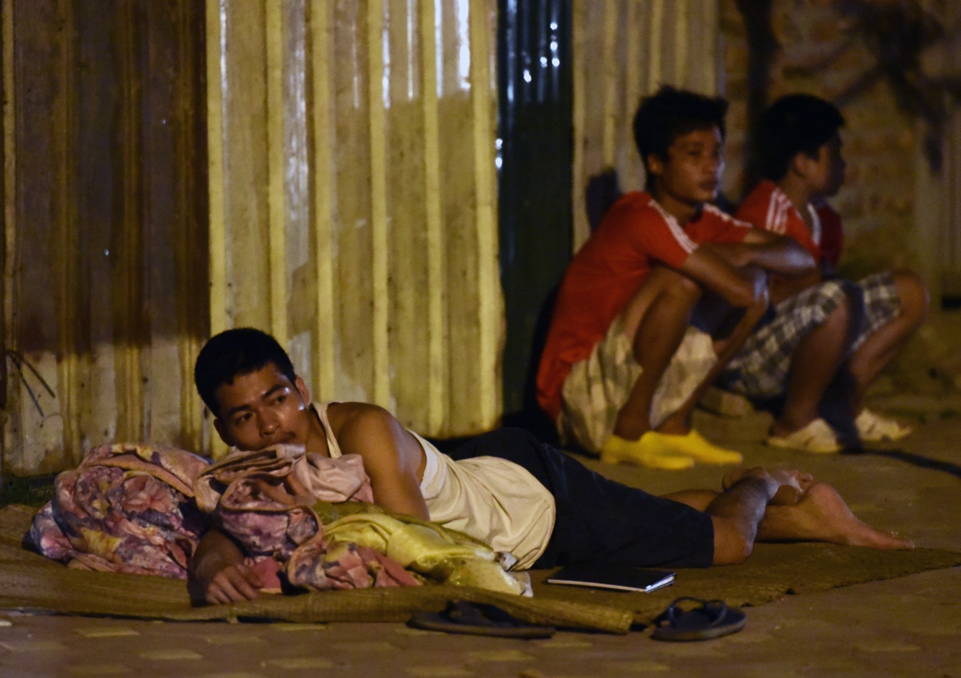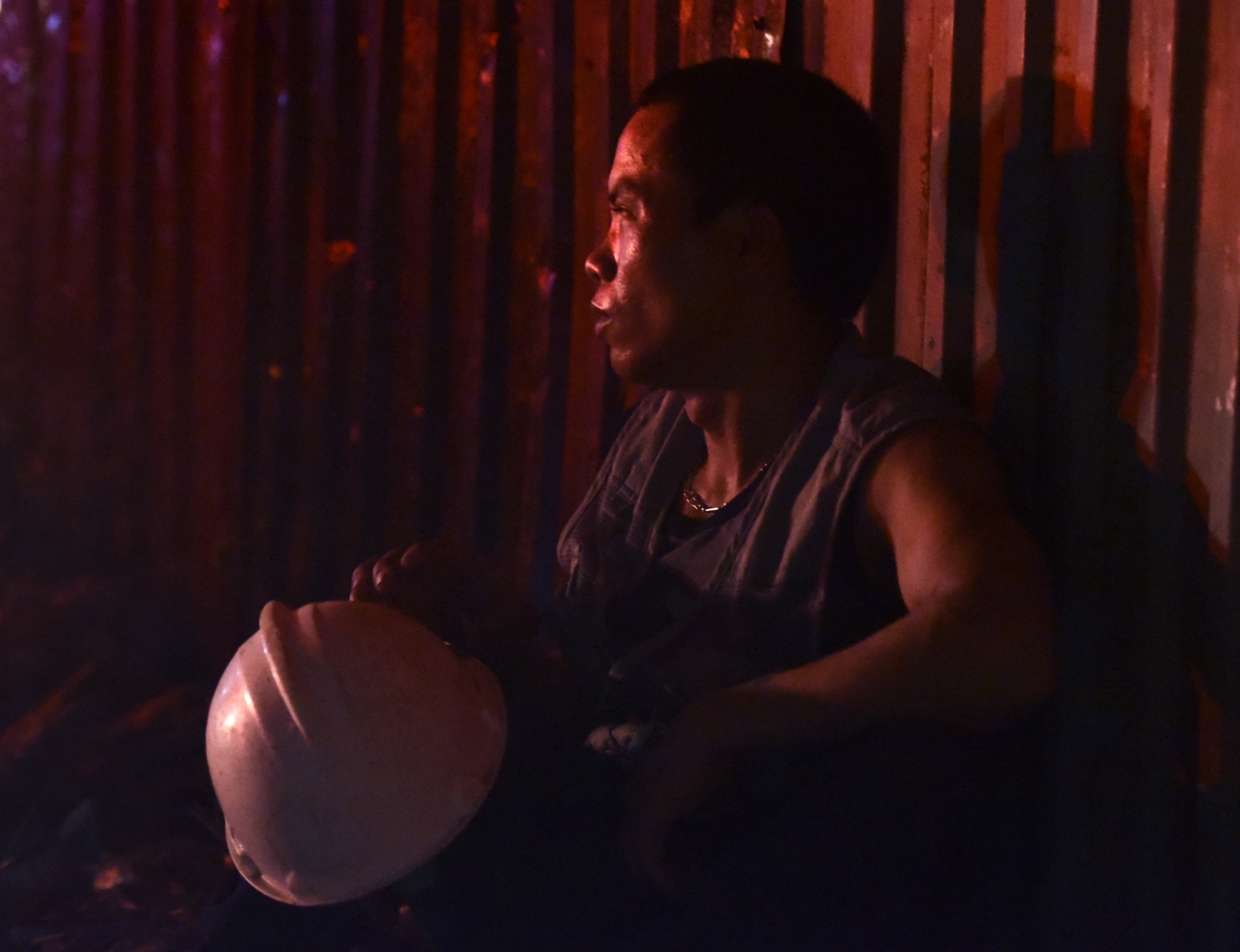 Các công nhân phải thu dọn vật dụng trong lán sơ tán.