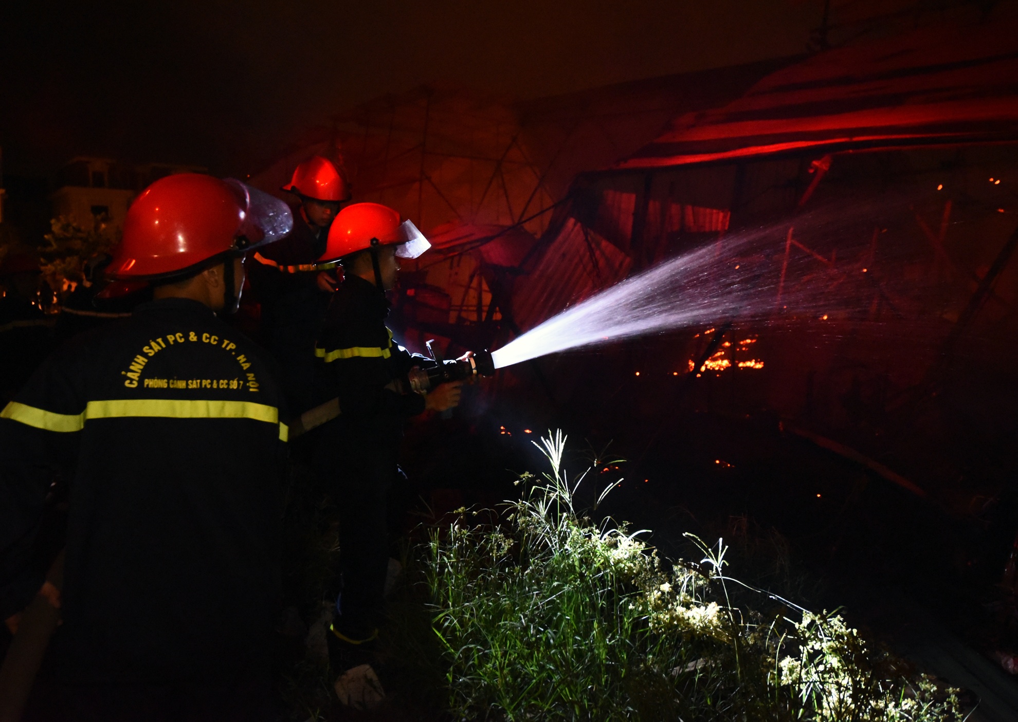 10 xe chữa cháy với hơn 100 chiến sĩ cứu hỏa của các lực lượng từ Thanh Trì, Hoàng Mai, Thanh Xuân và ĐH PCCC có mặt sau đó khoảng 15 phút.
