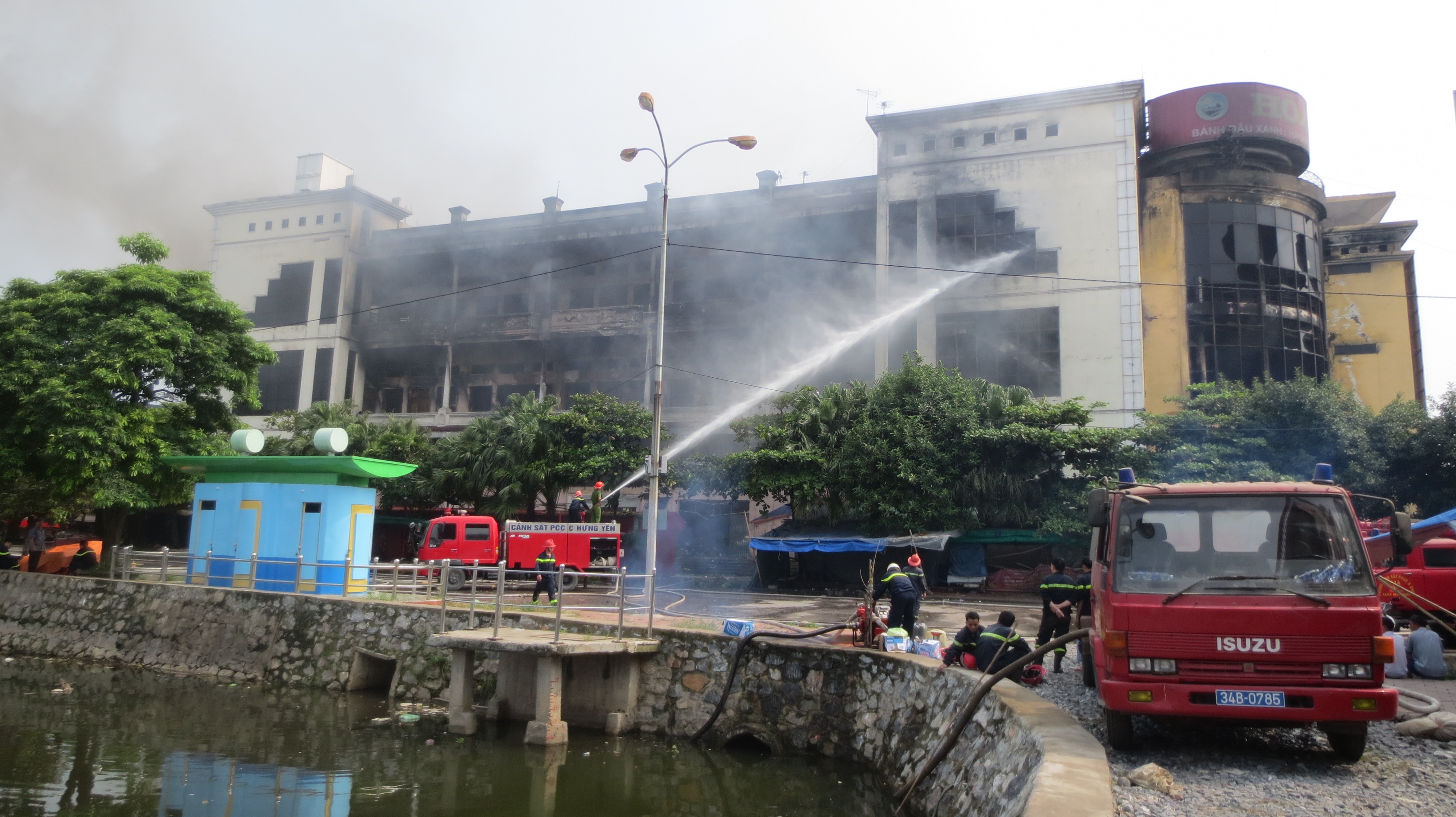 Công an TP.Hải Dương, cho biết trên 300 cán bộ, chiến sĩ công an và 100 người là lực lượng quân đội, dân quân tham gia chữa cháy. Thế nhưng, ngọn lửa vẫn thiêu rụi hàng trăm gia hàng. |