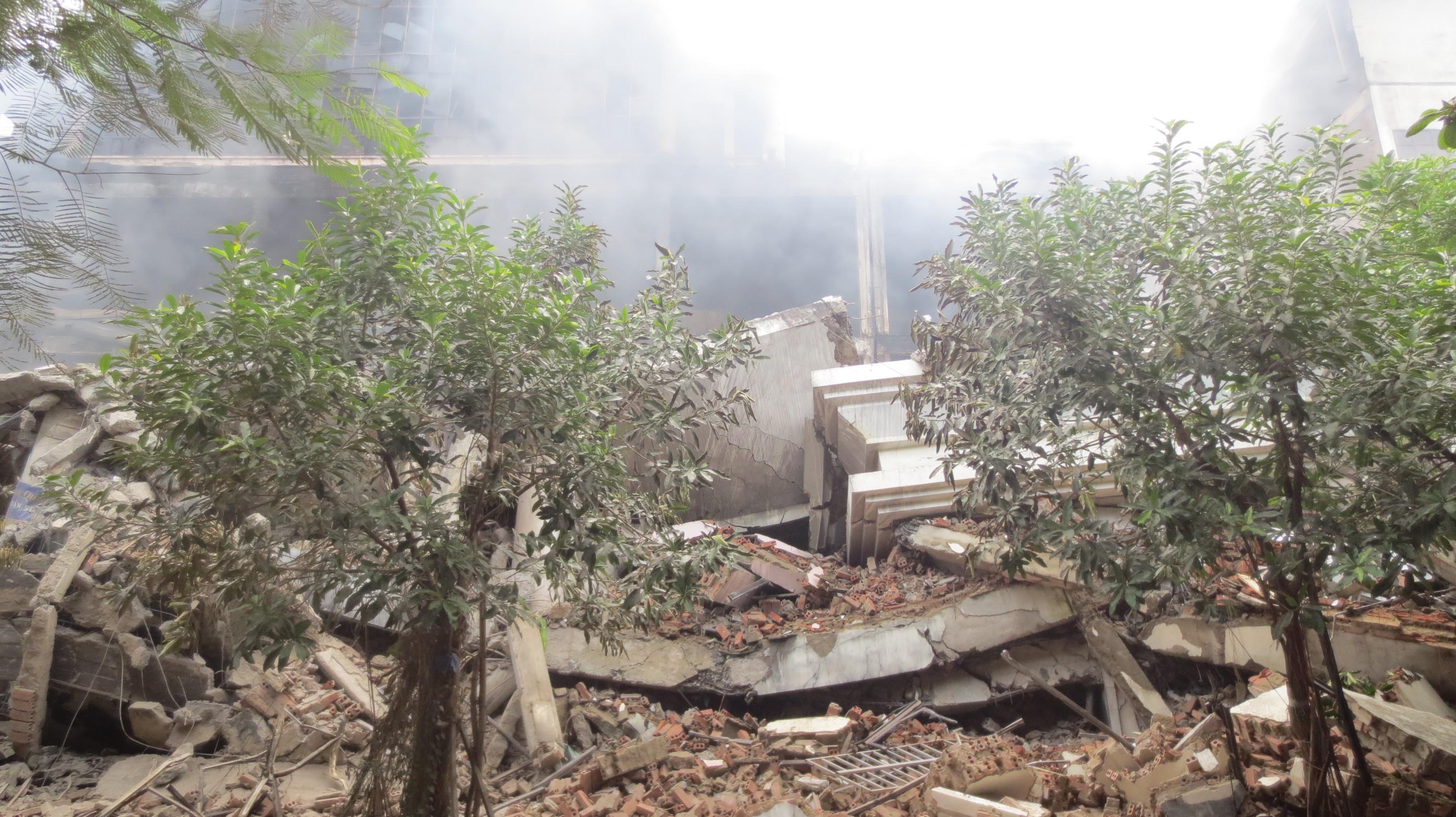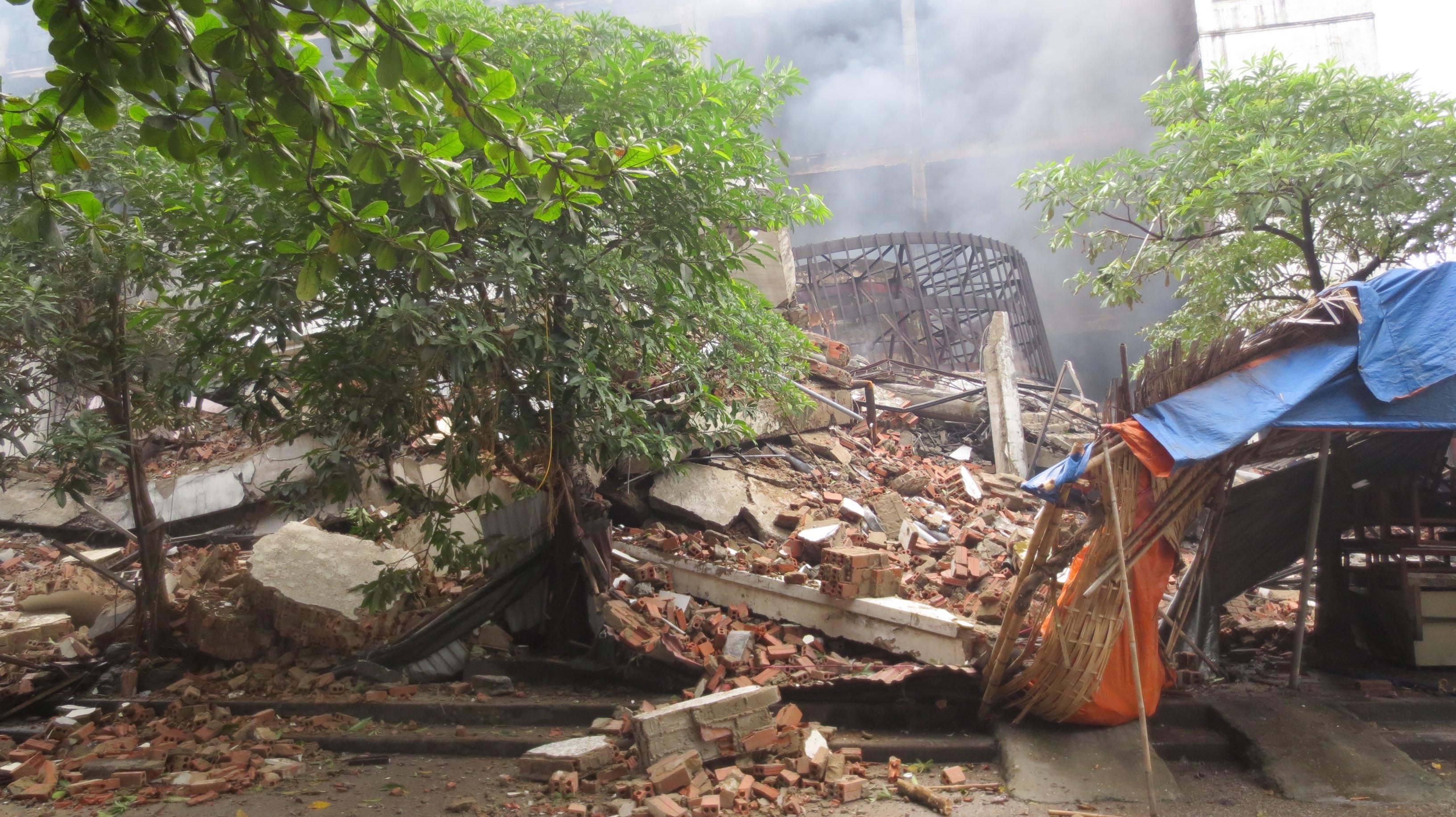 | Đến 11h ngày 15/9, đám cháy vẫn còn âm ỉ. |