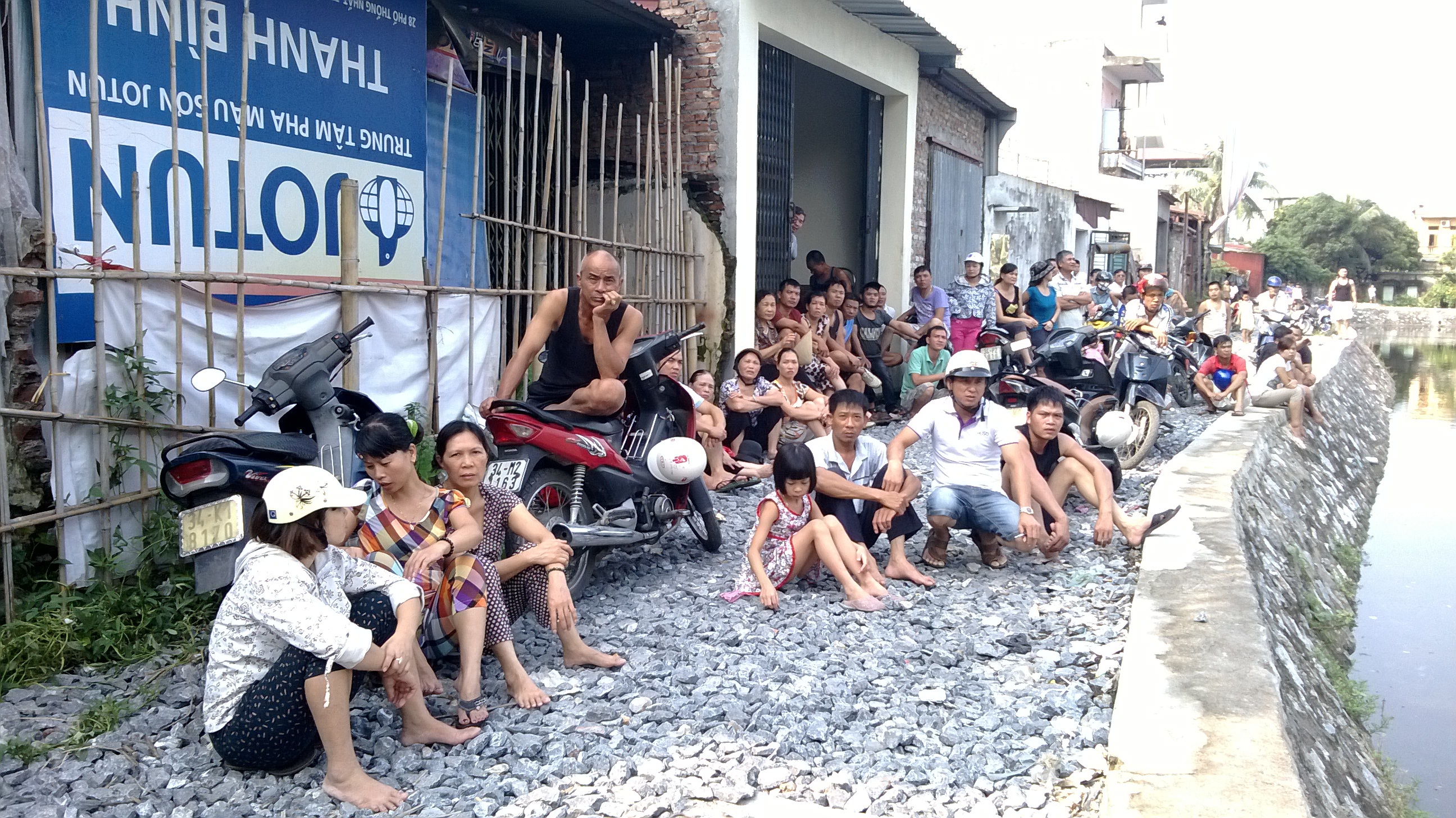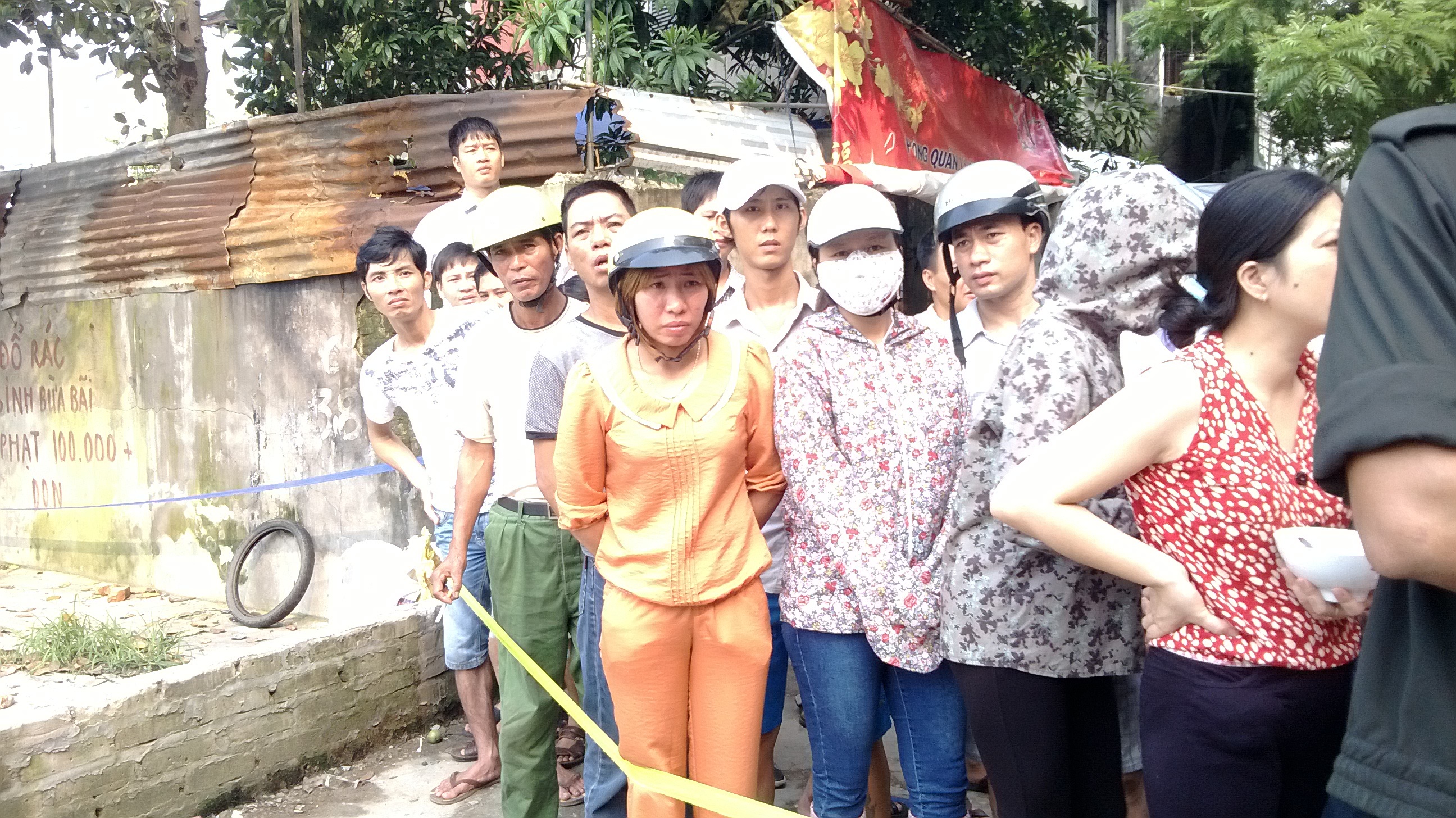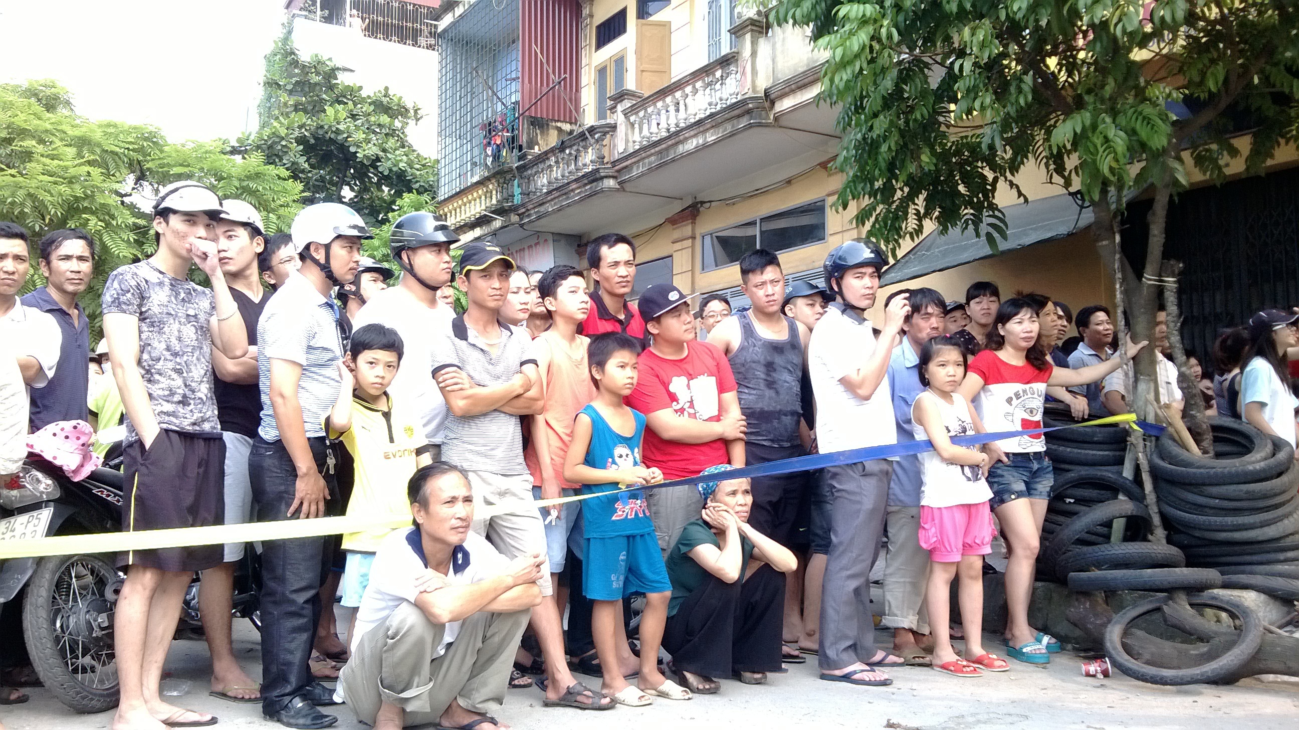 | Rất đông người tập trung theo dõi vụ cháy. |