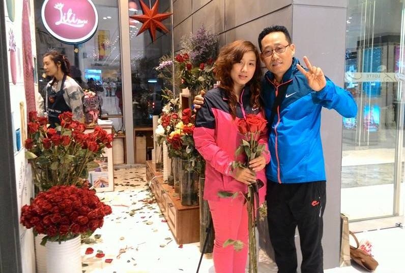 | Anh Jo Young Bum và vợ với những bông hồng dài 1,2 m tối 7/3. Ảnh: Diệp Sa. |