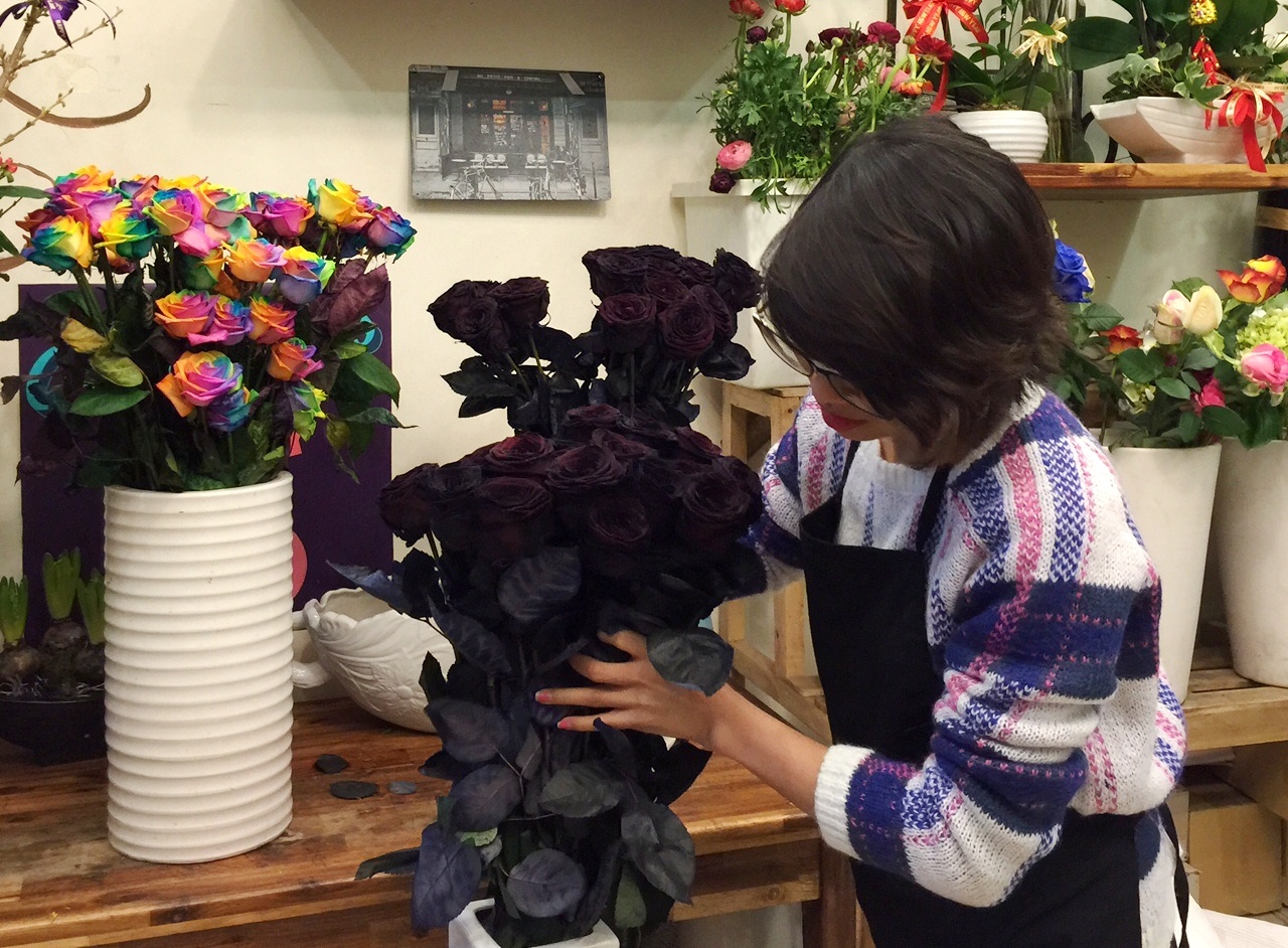 Trong số rất nhiều mẫu hoa, hoa hồng đen tươi nguyên cành và hồng đen, xanh ướp tươi vĩnh cửu nhập trực tiếp từ Ecuador về Việt Nam được cửa hàng này bán ra với mức giá 250.000 đồng/bông, cao hơn hẳn các mẫu hoa còn lại, nhưng vẫn có trên dưới chục đơn hàng đặt mua mỗi ngày.