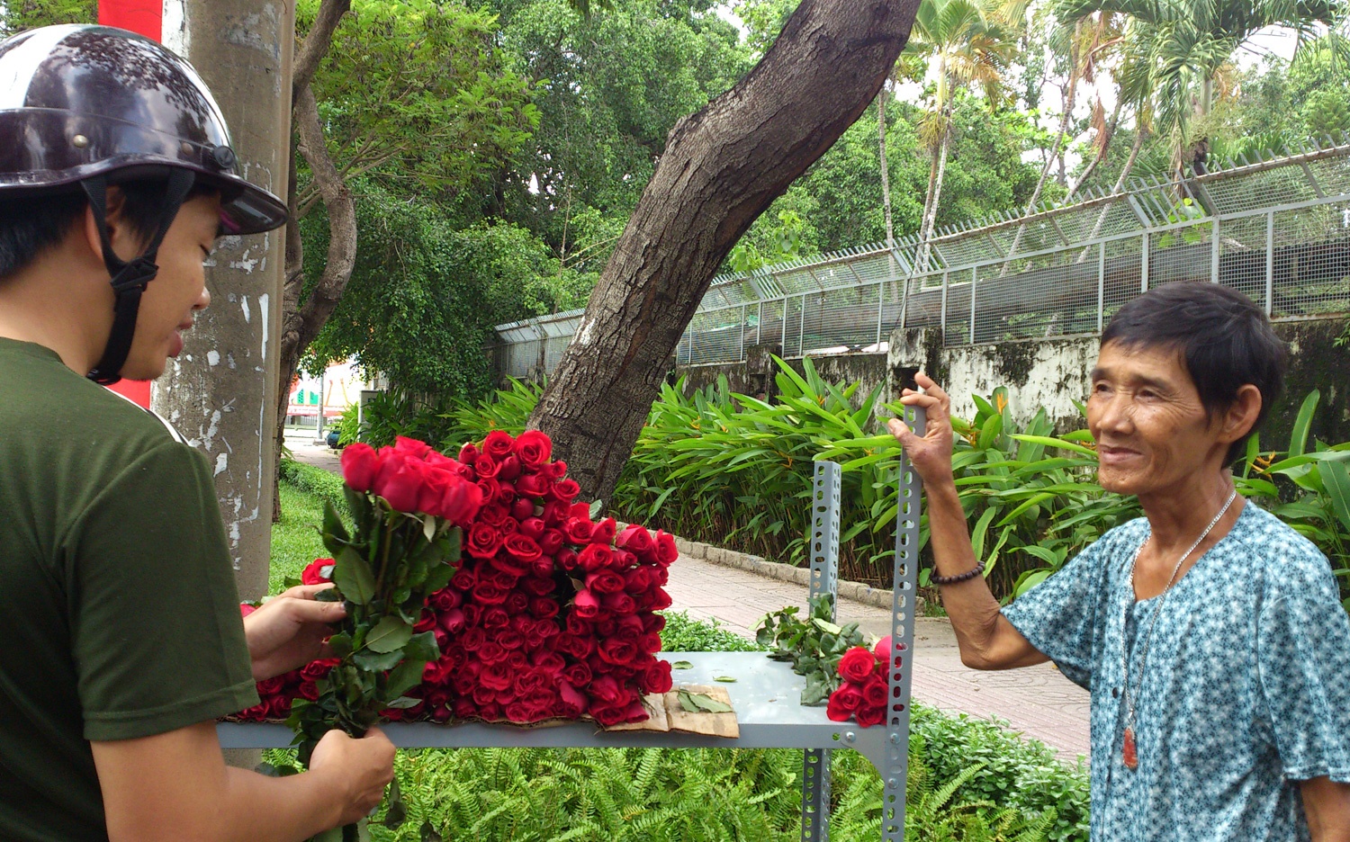| Tại một điểm bán hoa hồng ven đường Trương Định, quận 3, nếu ngày thường hoa hồng chỉ 15.000-20.000 đồng một chục thì giá ngày 17/10 là 40.000 đồng một chục. Ảnh: Ngọc Lan. |