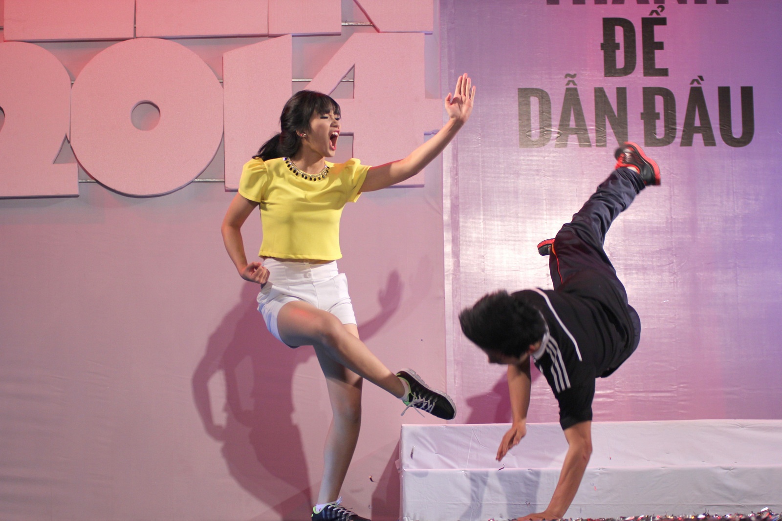 | Các thi sinh còn lại cũng biểu diễn nhiều tiết mục tài năng độc đáo của riêng mình. Cô gái Lê Thanh Tú, sinh viên năm 1, ĐH Mở Hà Nội với màn nhảy đầy sôi động. |