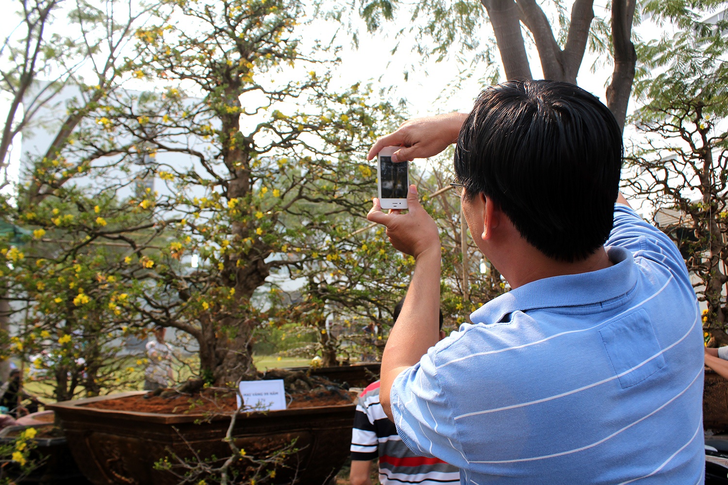 | Nhiều người tranh thủ ghi lại những hình ảnh tuyệt đẹp của cây mai . |