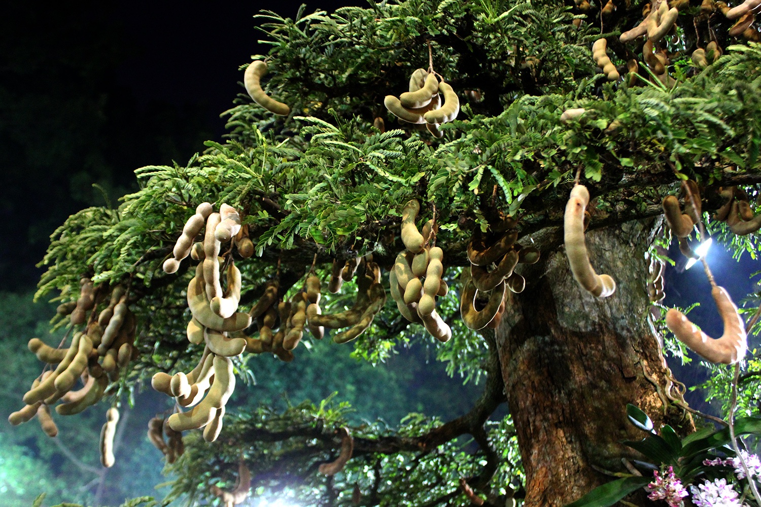 | Phần tán me được chăm tỉa tỉ mỉ với cành lá sum suê, trĩu quả. |