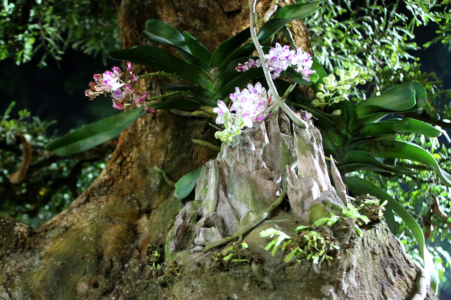 | Trên thân cây còn có một gốc lan bám rễ tự nhiên. |