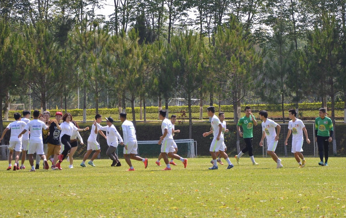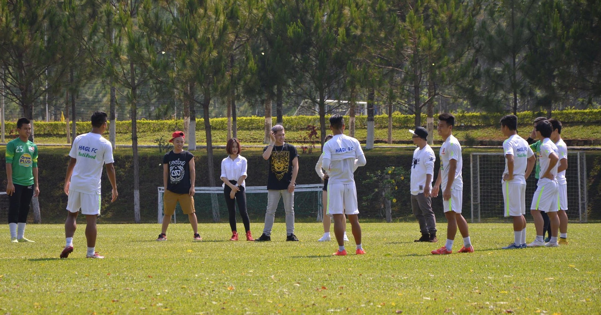 Sáng 7/4, các cầu thủ HAGL thực hiện màn vũ đạo để chuẩn bị ghi hình cho một clip quảng cáo. Đây là bản hợp đồng quảng cáo thứ ba của đội bóng phố núi kể từ khi đôn lứa cầu thủ U19 lên đá V.League 2015.