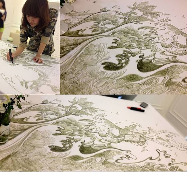 | Khoảnh khắc đẹp của cô họa sĩ trẻ. |