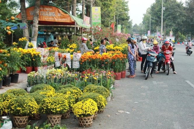 Theo ghi nhận của chúng tôi, tại các điểm bán hoa của TP Sa Đéc (Đồng Tháp), cúc mâm xôi rất thưa thớt. Nhiều gian chuyên bán cúc mâm xôi năm nay chỉ loe ngoe vài chậu hoa còn xanh.