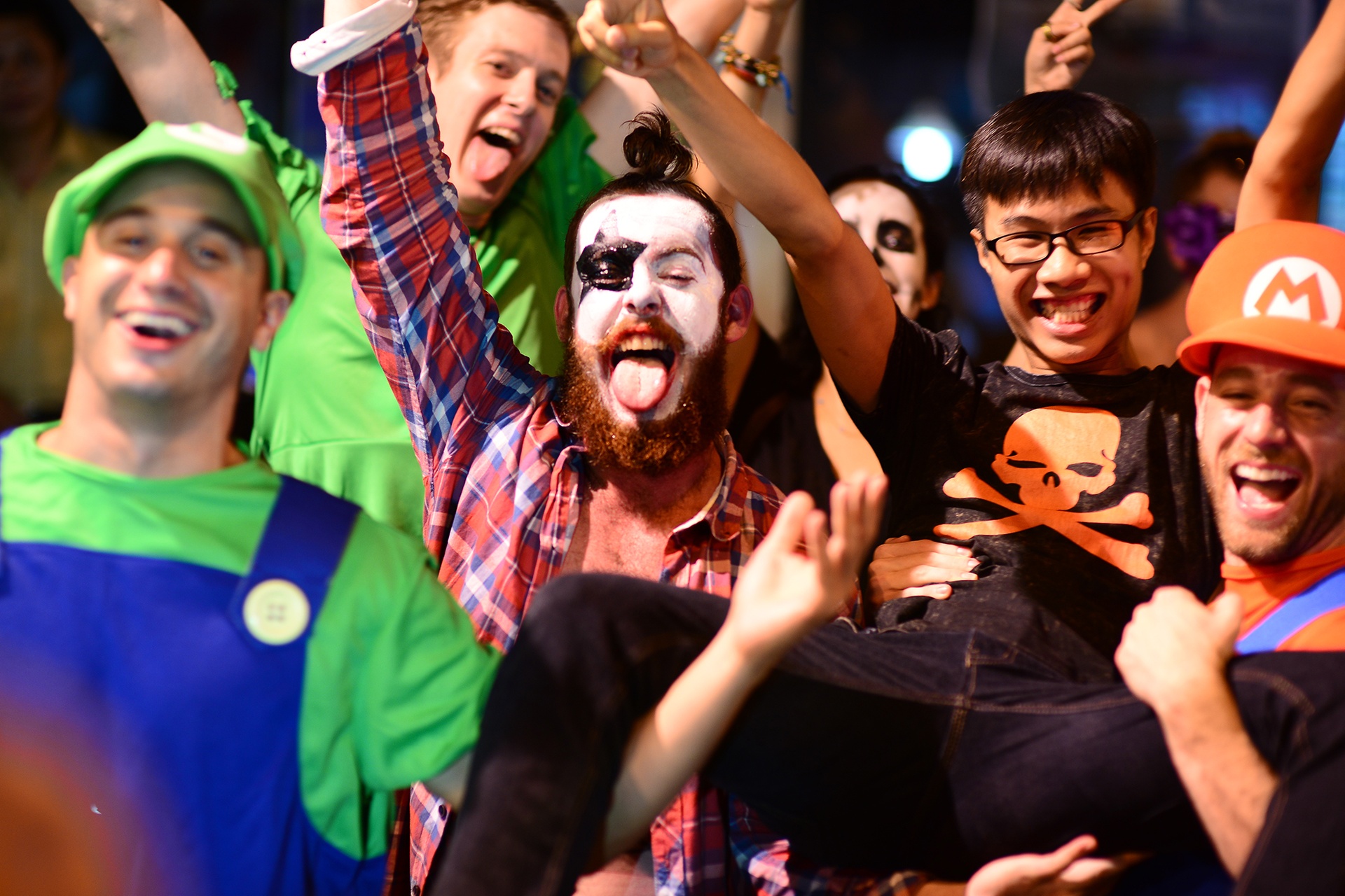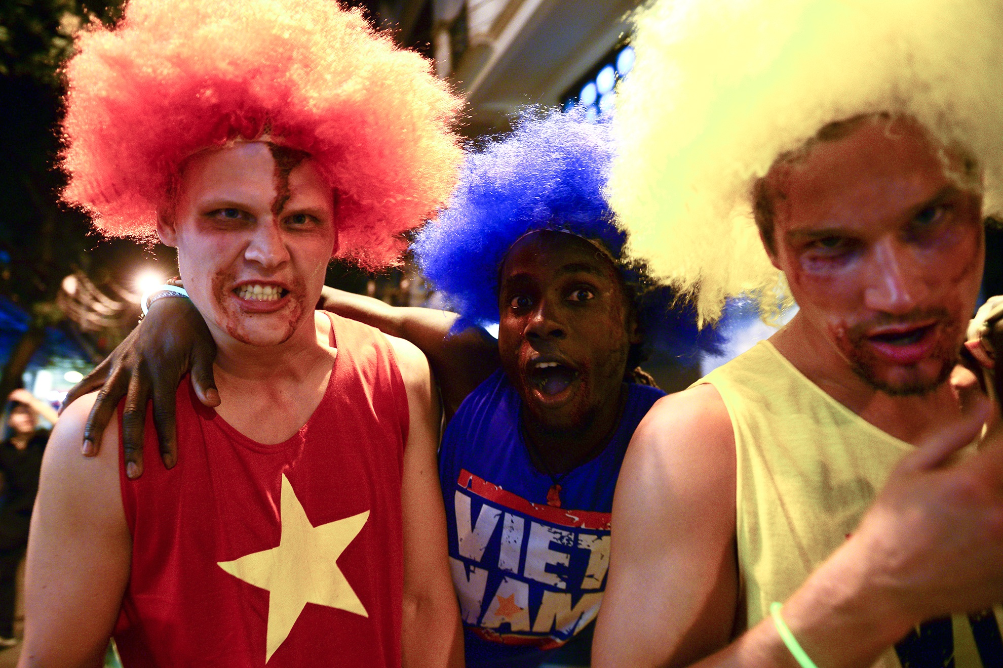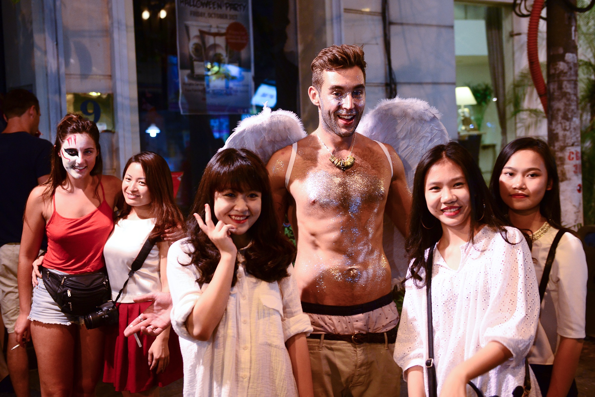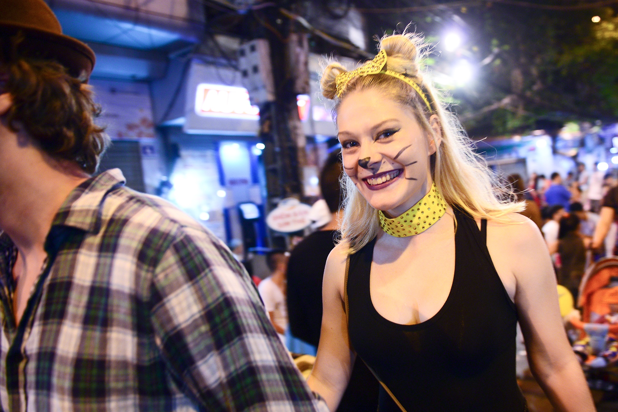 | Nhờ có các du khách nước ngoài, đêm Halloween Hà Nội đã sôi động hơn, khác hẳn với các năm trước khi giới trẻ và các nhóm chỉ tổ chức riêng trên sân khấu. |