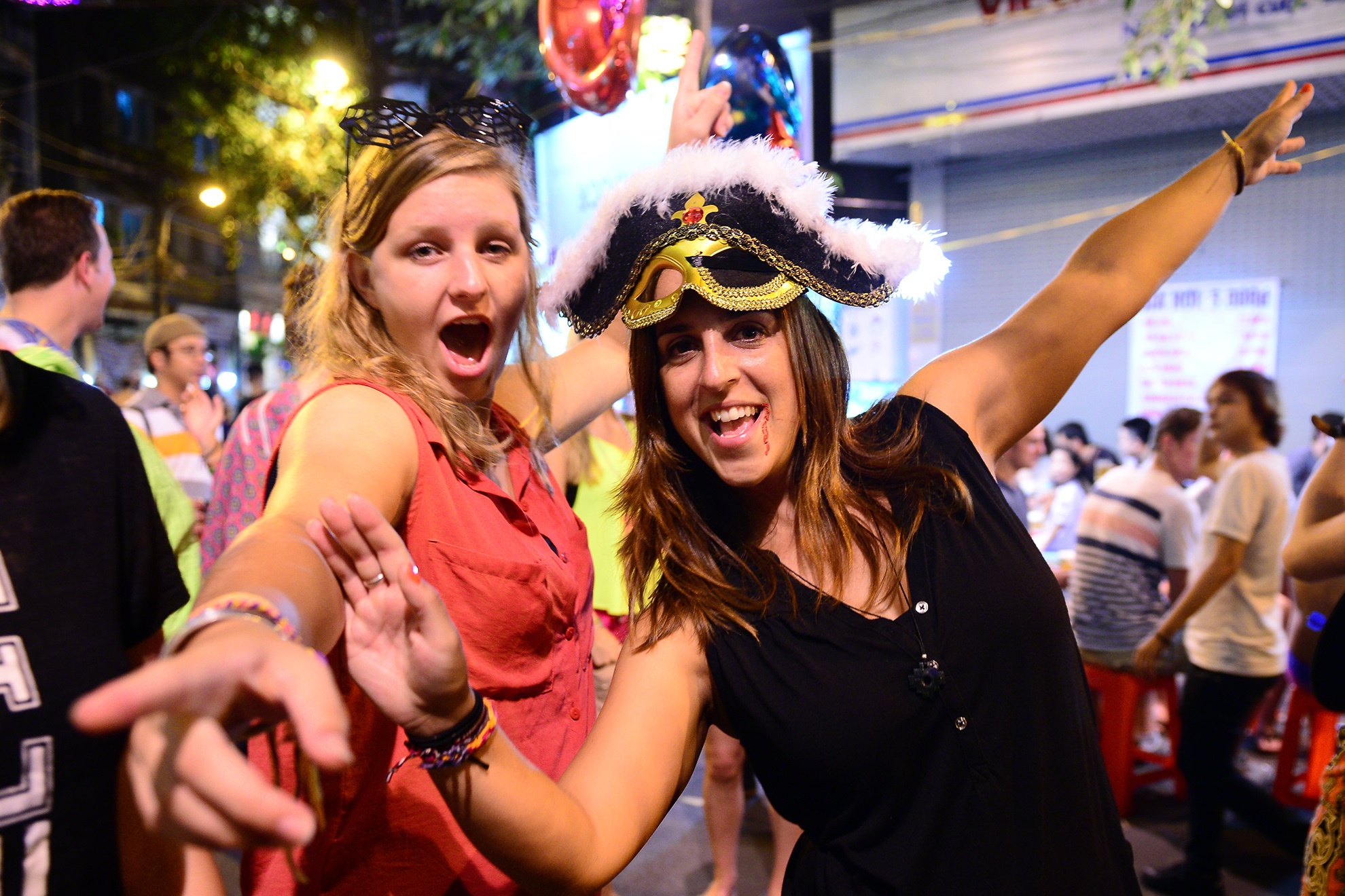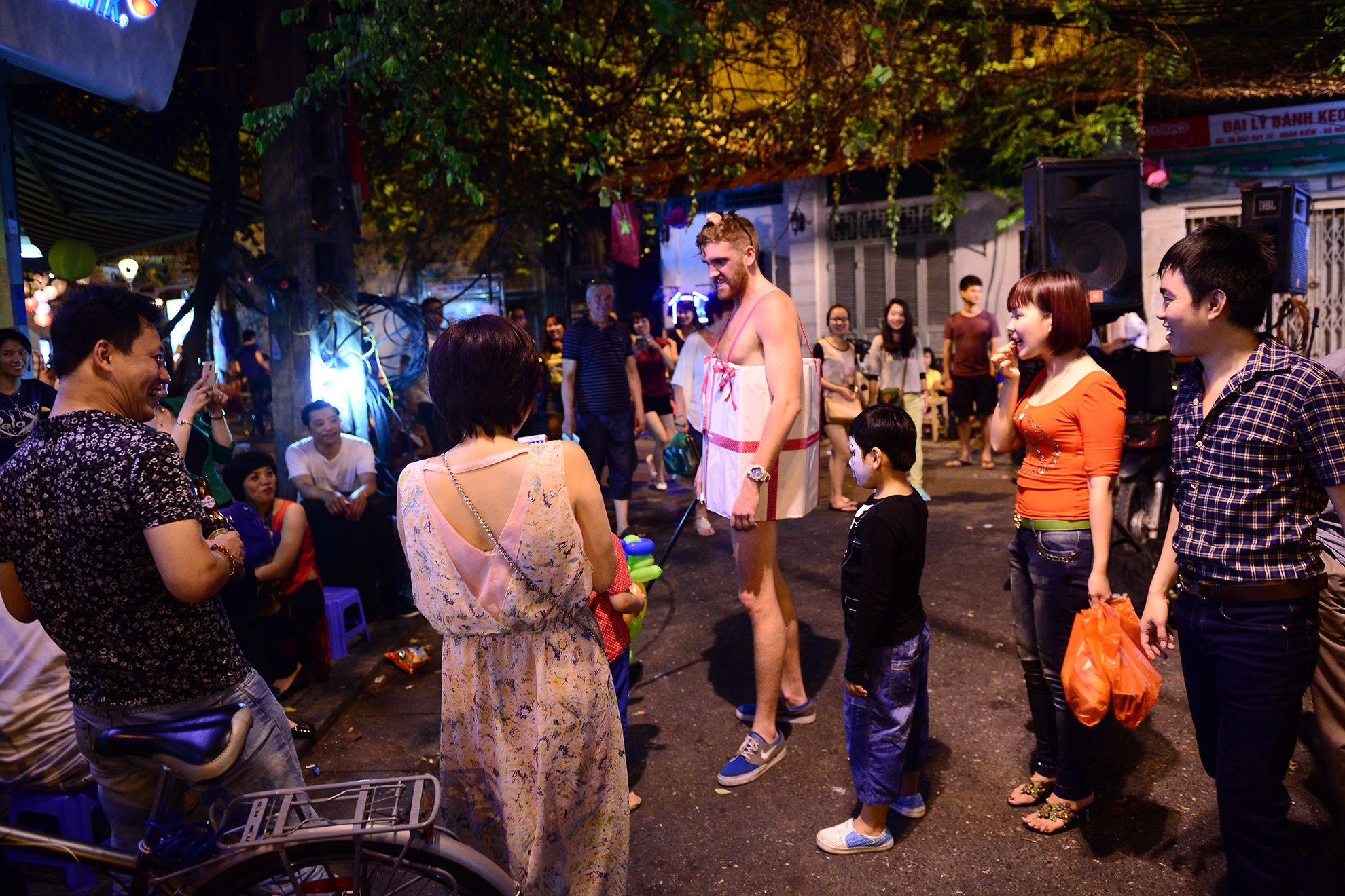 Phố cổ Hà Nội đã có một đêm hoá trang thực sự náo nhiệt, vui nhộn, đầy sắc màu với diễn viên chính là các vị khách Tây.