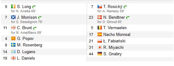Nhằm tạo sự đột biến cho những pha lên bóng của Arsenal, HLV Wenger đưa Rosicky vào thế chỗ của Ramsey. Phút 63, Pháo thủ có bàn thắng gỡ hòa 1-1 do công của Wilshere. Từ ngoài vòng 16m50, tiền vệ người Anh tung cú sút đánh bại thủ môn đối phương.