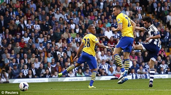 | Arsenal hòa 1-1 trong trận làm khách trên sân của West Brom. |