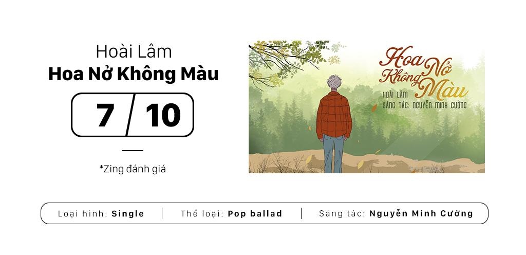 Tối 15/5, Hoài Lâm bất ngờ trở lại đời sống âm nhạc sau khoảng thời gian vắng bóng hoàn toàn khỏi thị trường. Ca khúc mới của anh có tên Hoa nở không màu là một sáng tác của nhạc sĩ Nguyễn Minh Cường, lấy cảm hứng từ bài thơ Tựa lưng vào tường và khóc của nhà thơ Nguyễn Phong Việt.