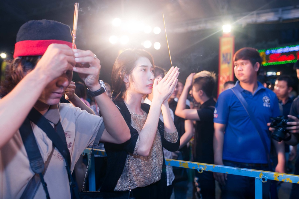 | Nhật Kim Anh thành kính dâng hương cúng Tổ. |