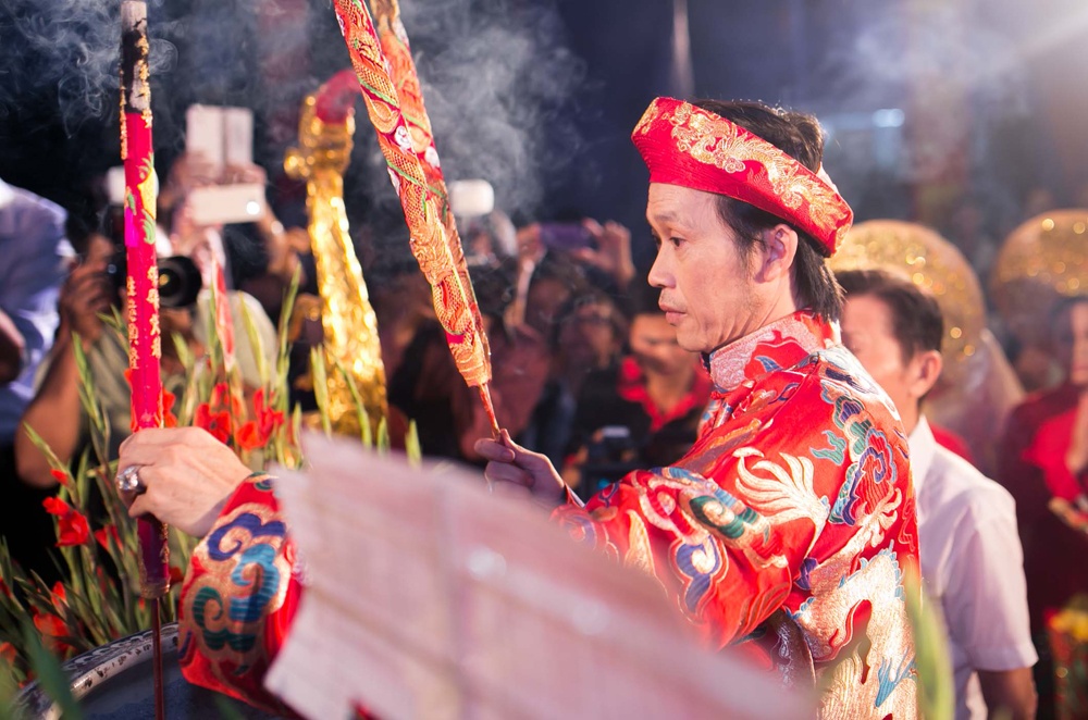 Hôm 4/9, Hoài Linh đã có mặt tại sân khấu Nụ cười mới - TP.HCM để làm lễ cúng Tổ ngành. MC của chương trình The Winner Is nhận trọng trách chủ trì buổi lễ. Anh mặc áo dài, đội khăn đóng và có mặt khá sớm để chuẩn bị cho buổi lễ trọng đại.