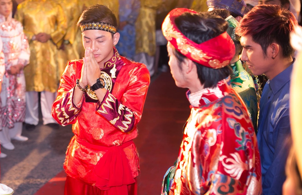 | Trong suốt buổi lễ, Long Nhật rất thân thiết và trò chuyện liên tục với Minh Béo. |