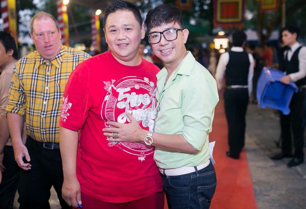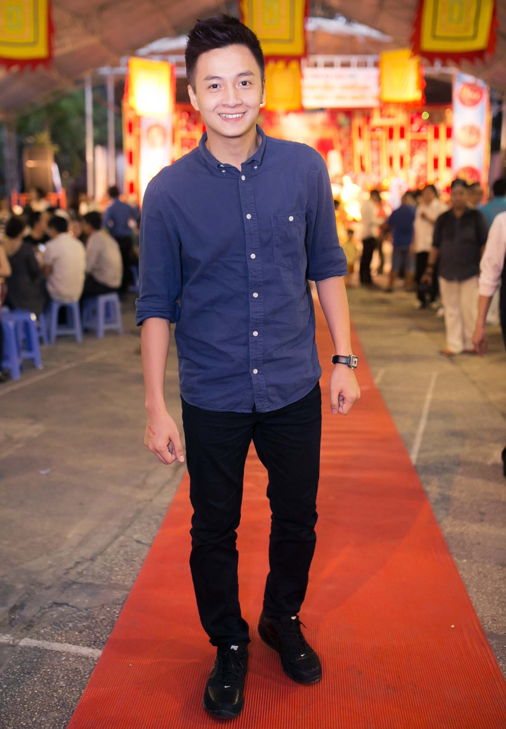 | Quốc Thiên ăn vận khá đơn giản khi tới dự buổi lễ do đàn anh Hoài Linh tổ chức. |