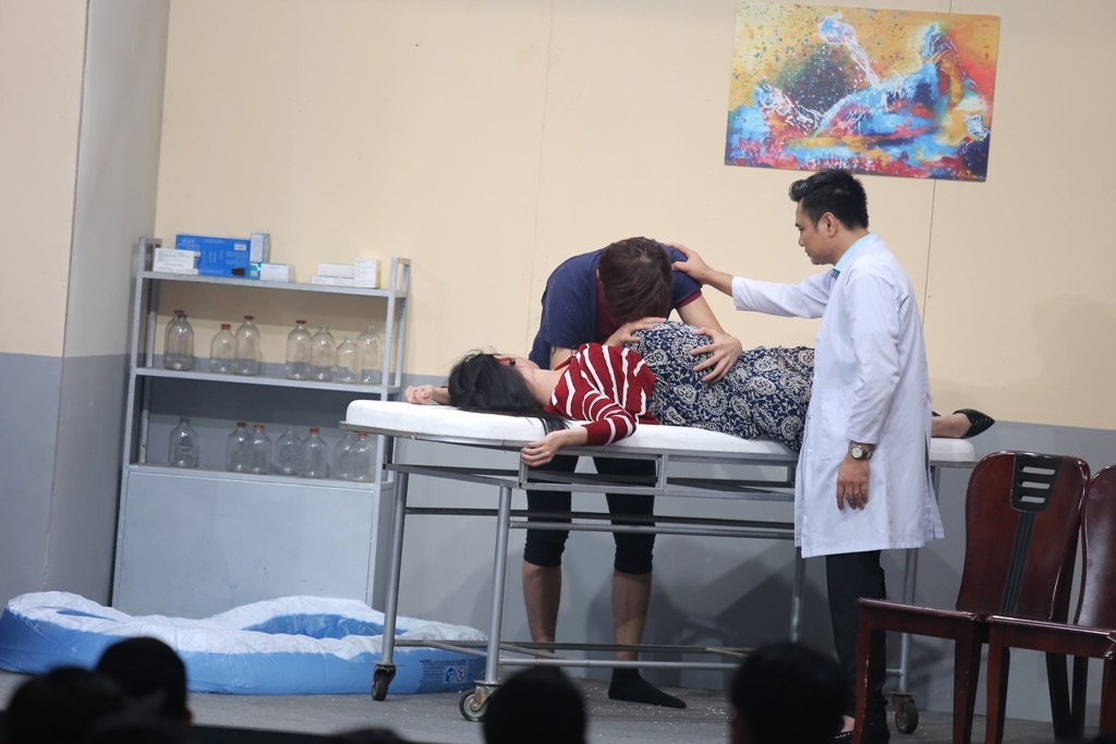 Ở một tình huống, bác sĩ Tự Long bắt Tim nằm lên bàn và... tụt quần để khám thai. Màn giằng co giữ quần của 2 diễn viên đem lại cho khán giả nhiều tiếng cười sảng khoái. Tuy nhiên sau đó đường dây kịch bản thay đổi, ông xã Trương Quỳnh Anh chỉ đang học lớp dành cho các ông bố sắp đón con chào đời.