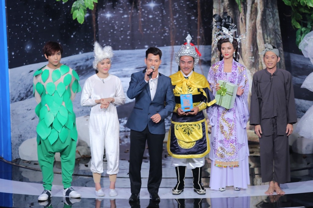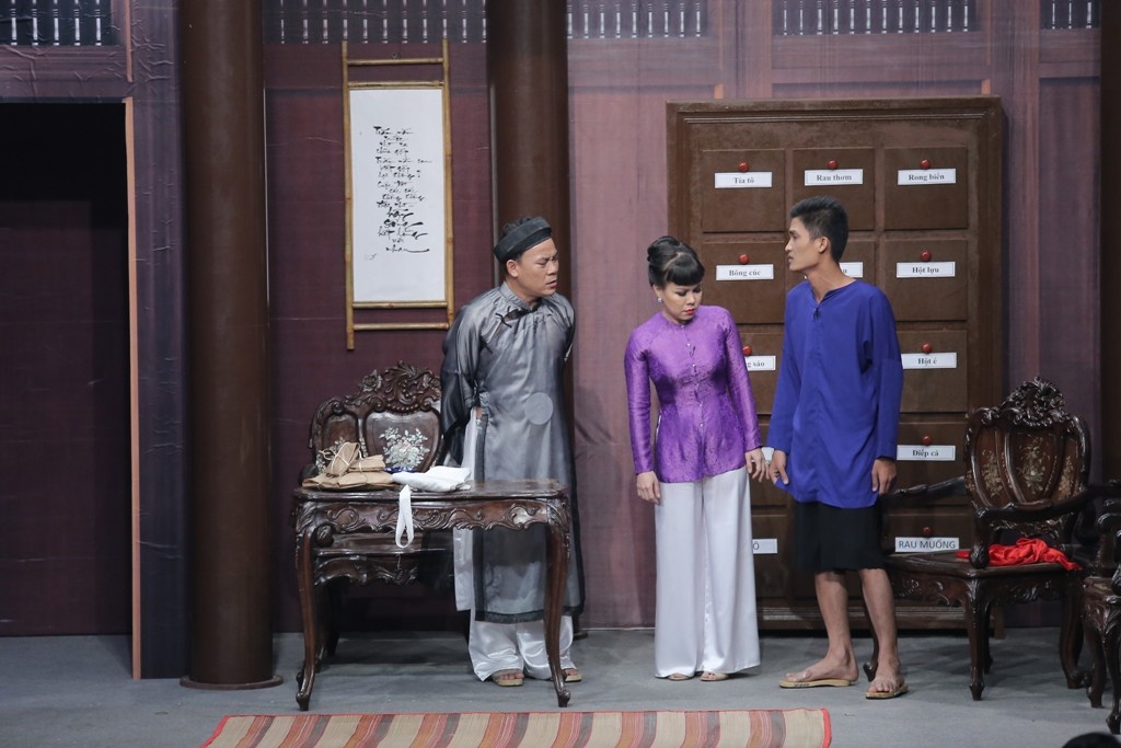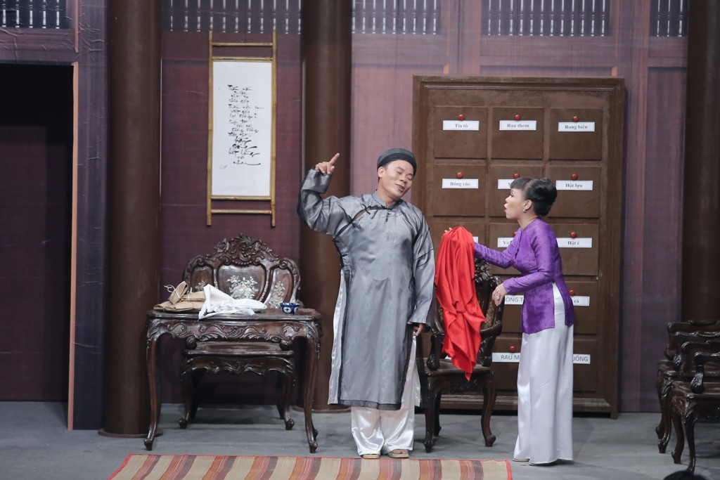 Ở một tình huống khác, khi diễn viên hỗ trợ Văn Khoa xuất hiện, Phương Bình lại tiết lộ mẫu người đàn ông lý tưởng của Việt Hương: “Đây là chồng thứ hai của bà. Còn ông chồng đầu tiên của bà là Hoài Linh. “Gu” của bà thích gầy gầy, nói giọng khàn khàn như vầy đúng không?”.