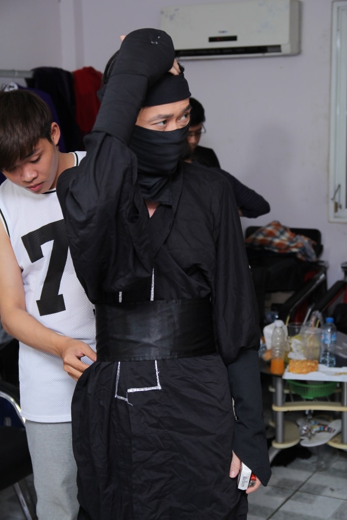| Hội quán tiếu lâm bày bán món ăn đến từ Nhật Bản. Để phù hợp bối cảnh mô phỏng xứ sở mặt trời mọc, danh hài diện trang phục đen kín mít để hóa thành Ninja. Các trợ lý giúp anh sửa lại trang phục trước khi ra sân khấu trổ tài cứu khách mời. |