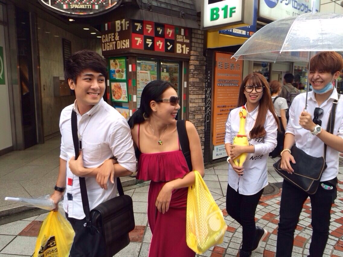 Các nghệ sĩ Việt vui vẻ trò chuyện trên đường đi shopping tại Nhật.