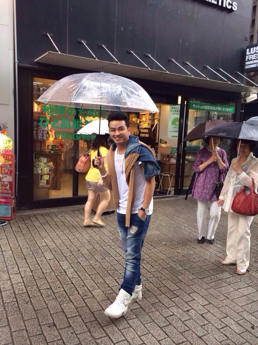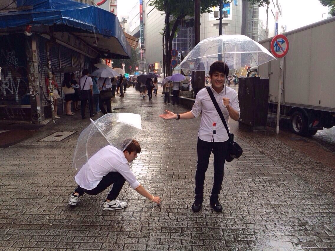 Hai anh chàng La Thăng thích thú với cơn mưa phùn lãng mạn tại Nhật.