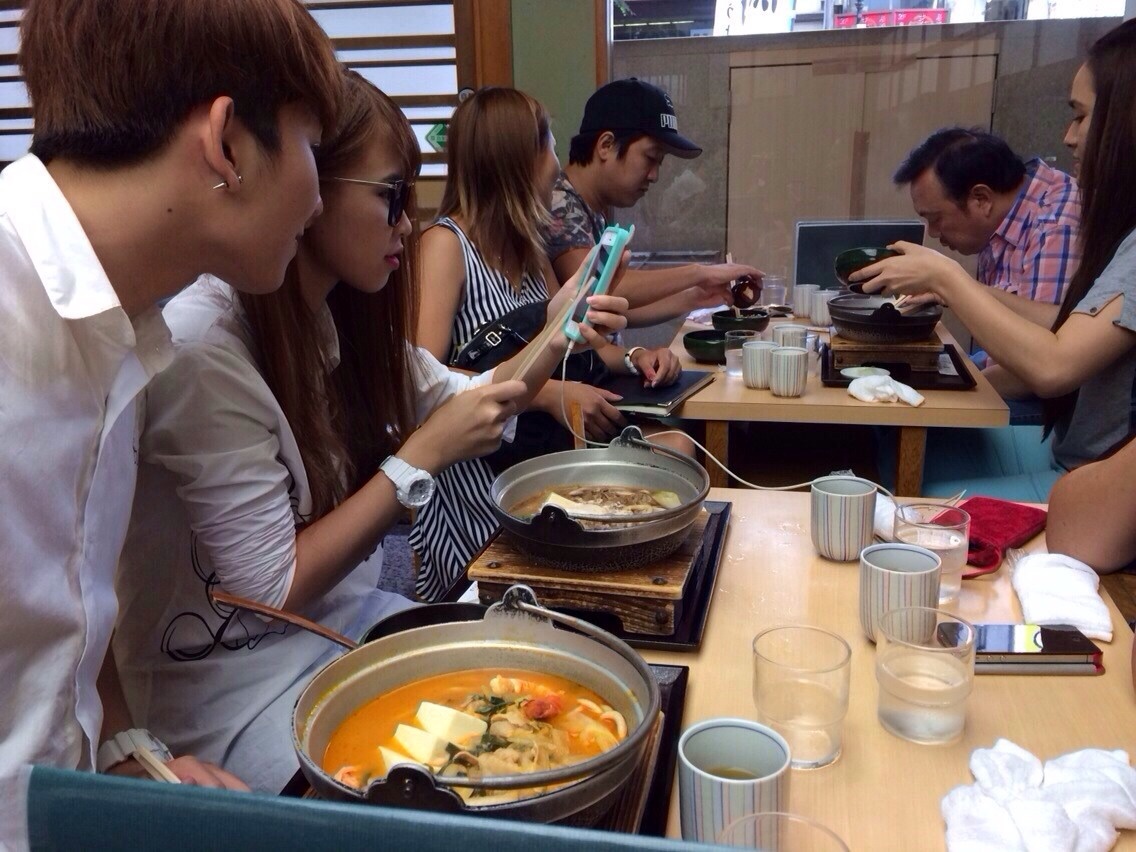 | Việc đầu tiên đoàn nghệ sĩ làm sau khi gặp nhau là đi ăn và shopping. Tuy nhìn ai cũng gầy ốm nhưng ăn khỏe đến mức phục vụ quán rất bất ngờ. |