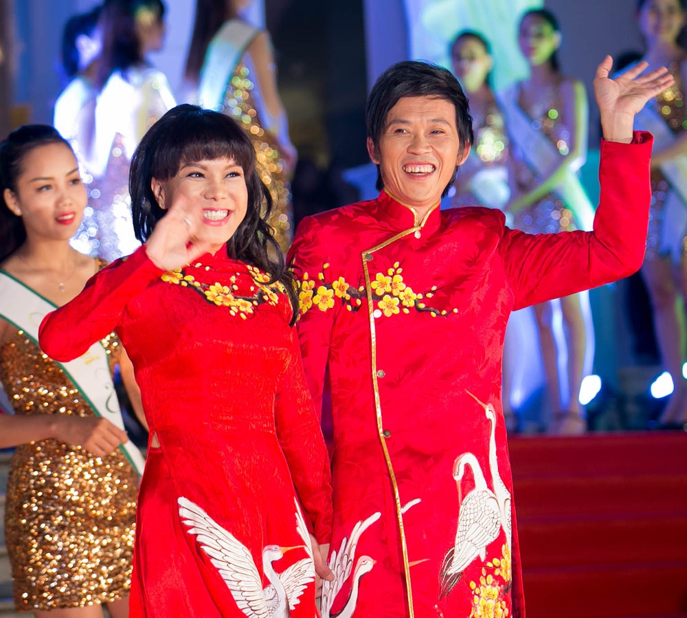 | Đáp lại tiếng reo hò của người hâm mộ, hai diễn viên nổi tiếng liên tục nở nụ cười tươi và vẫy tay chào. Trên sân khấu, Hoài Linh và Việt Hương là cặp bài trùng, còn ngoài đời, họ là những người đồng nghiệp, anh em thân thiết. |