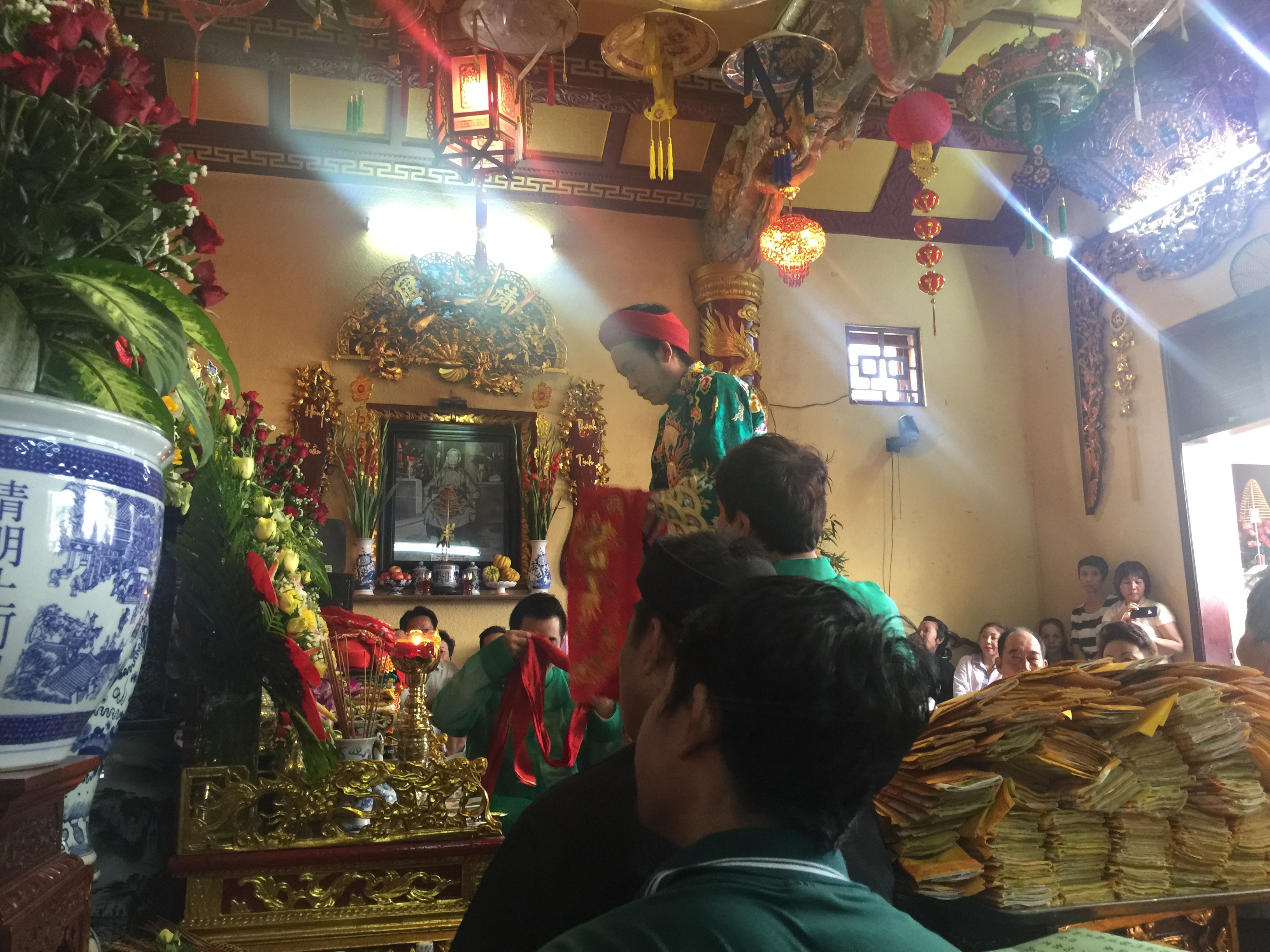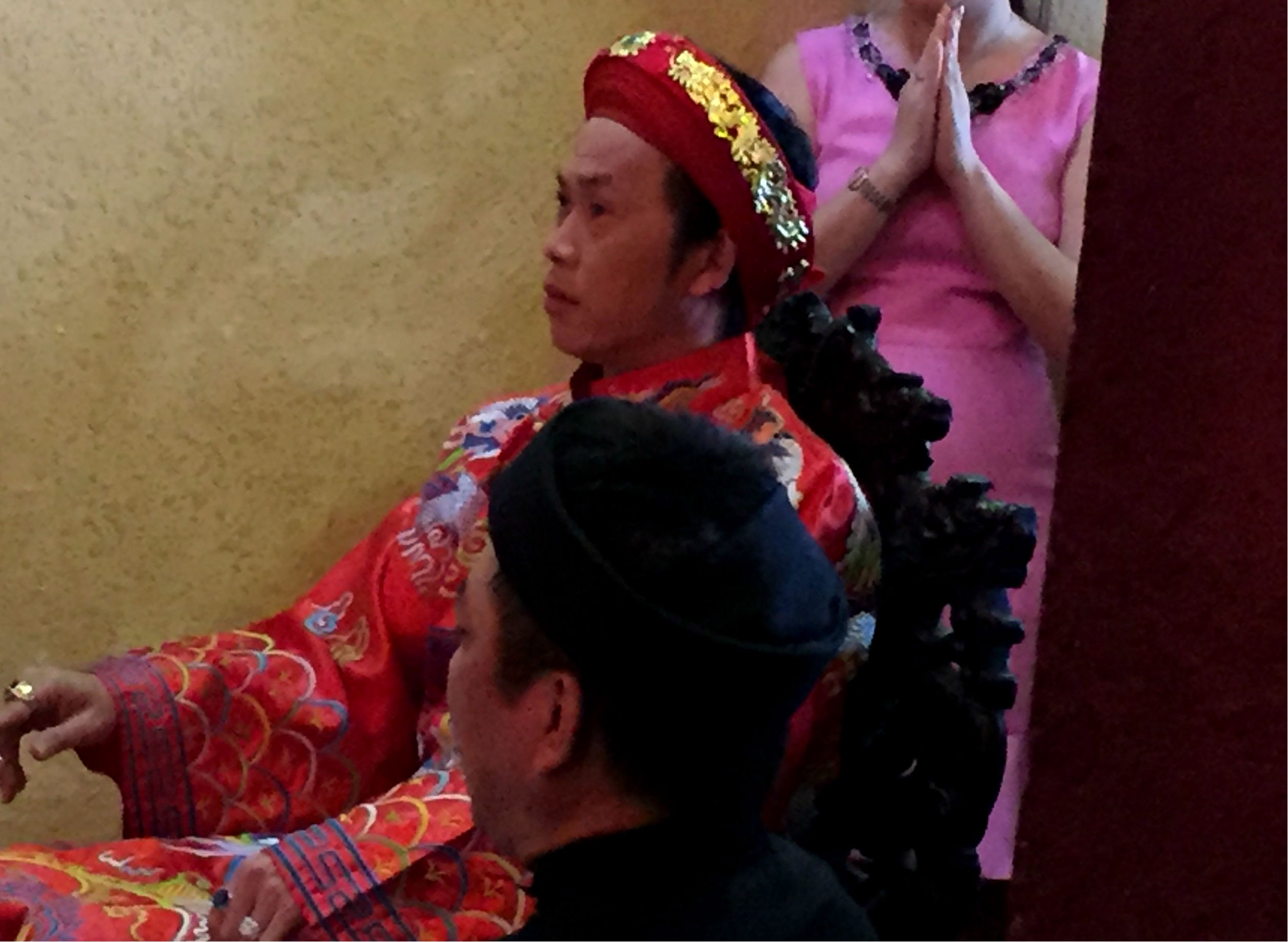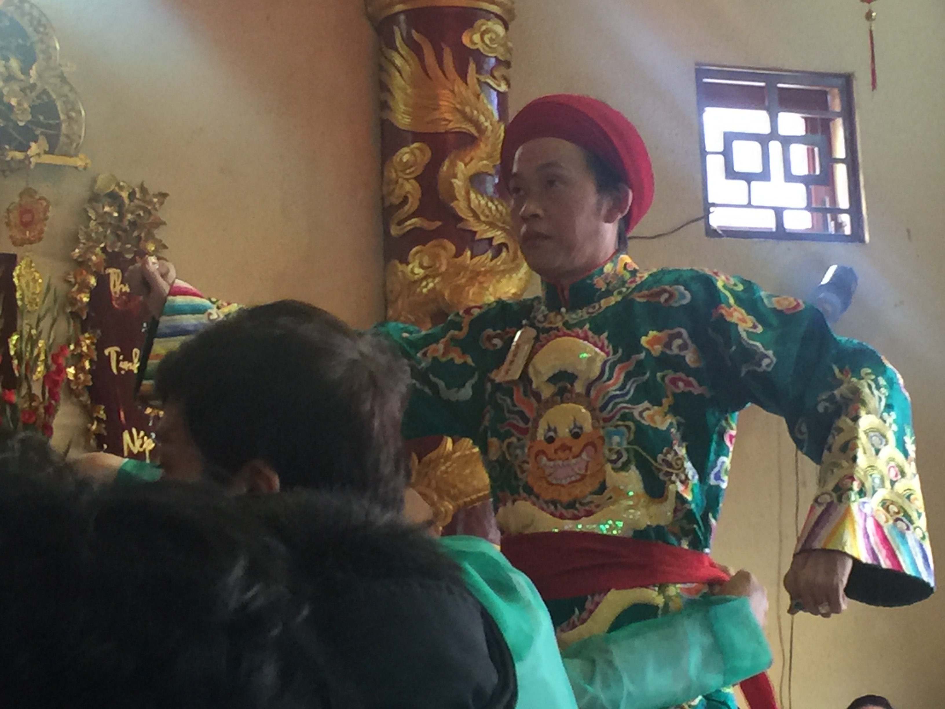 Mặc dù buổi lễ diễn ra từ 12h nhưng "Sáu Bảnh" đã có mặt từ sớm để chuẩn bị hầu đồng. Trong suốt buổi hầu, Hoài Linh luôn giữ thái độ trang nghiêm. Theo tiết lộ của người dân sinh sống tại đây, nam nghệ sĩ vốn có hiểu biết về tục lệ và được nhiều người yêu mến nên chủ nhân ngôi đền đã mời anh về chủ trì. |