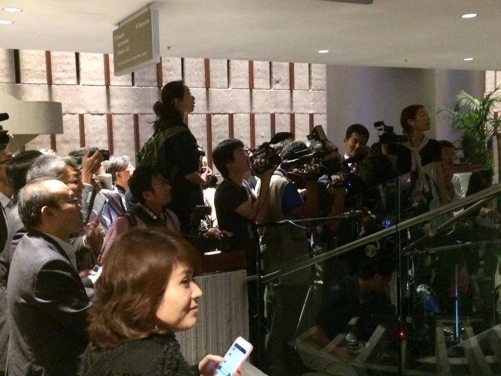 | Hơn 100 phóng viên đã có mặt để chờ đợi buổi họp báo công bố hoàn tất TPP. Ảnh: Alex_panetta Twitter |