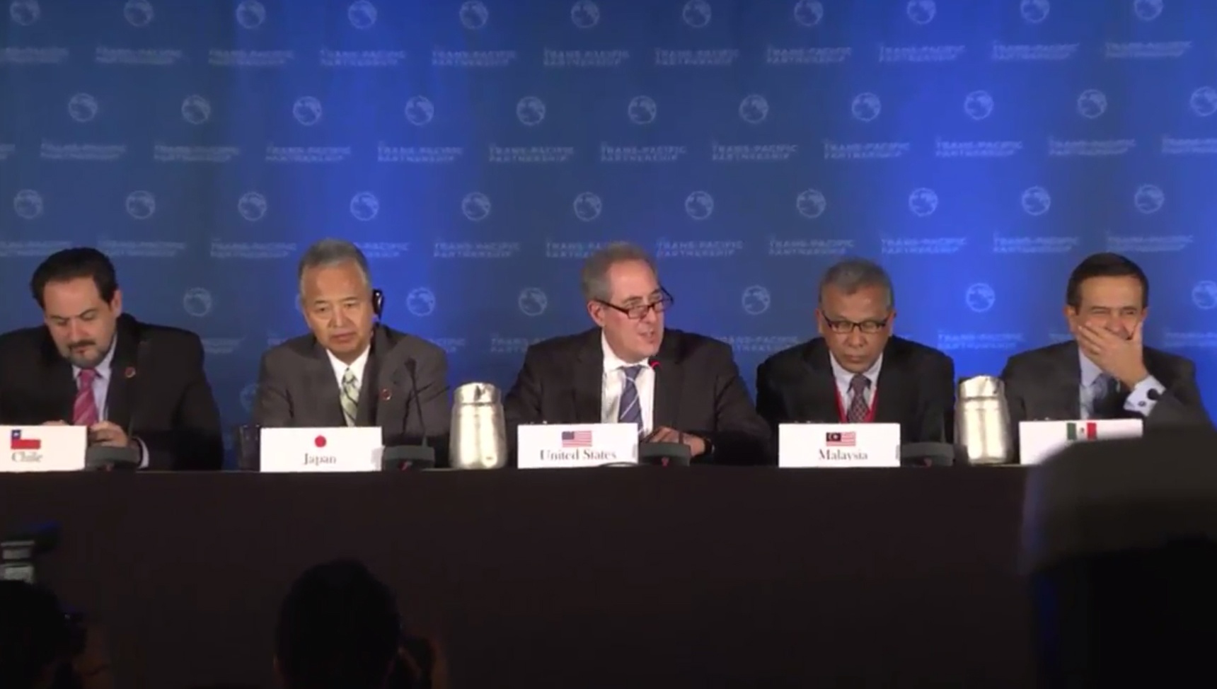 "Chúng tôi – các bộ trưởng thương mại của Australia, Brunei, Canada, Chile, Nhật Bản, Malaysia, New Zealand, Peru, Singapore, Mỹ và Việt Nam - vui mừng thông báo rằng, chúng ta đã đạt được thỏa thuận về Hiệp định Đối tác xuyên Thái Bình Dương (TPP)", ông Mike Froman, đại diện thương mại Mỹ, thông báo.