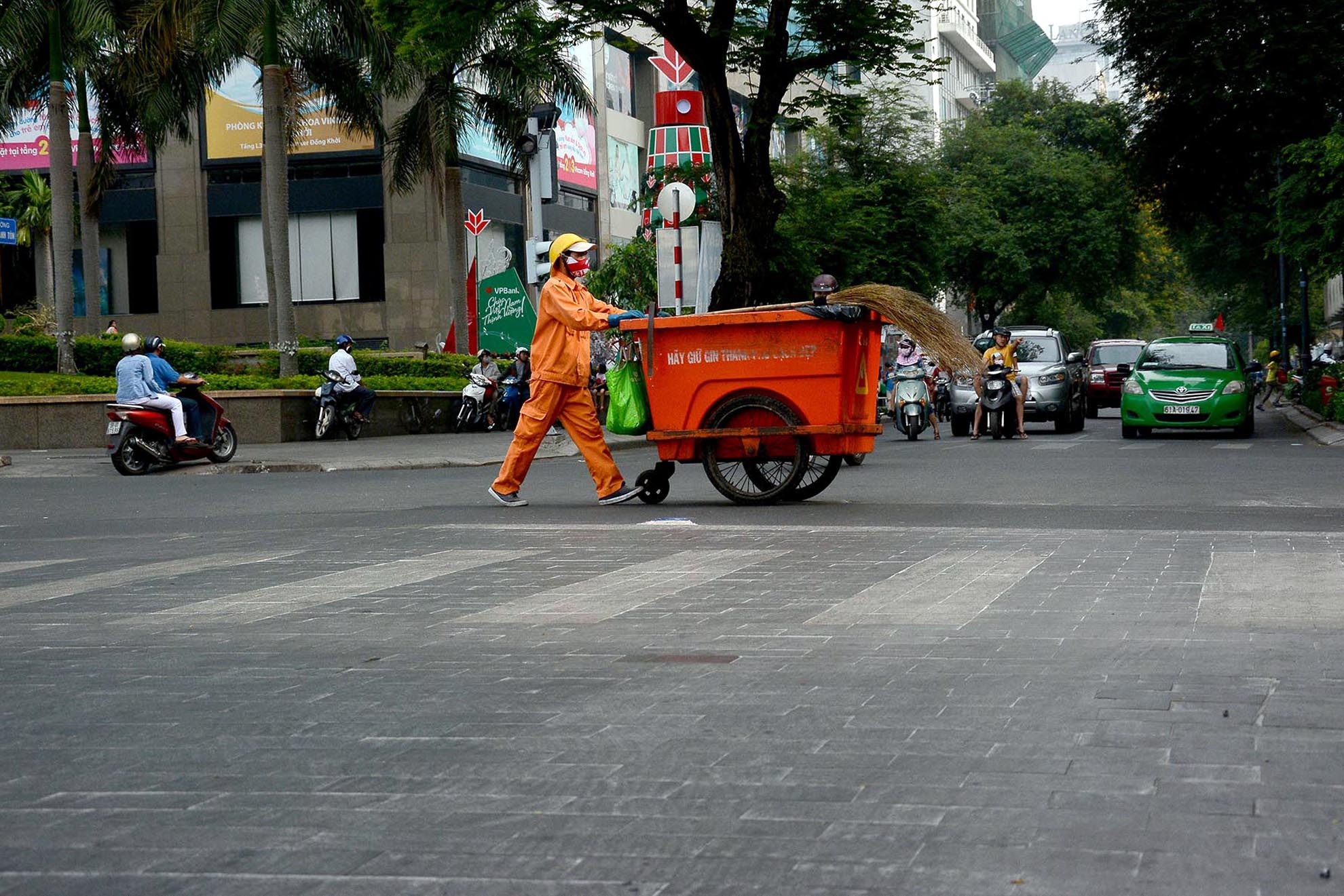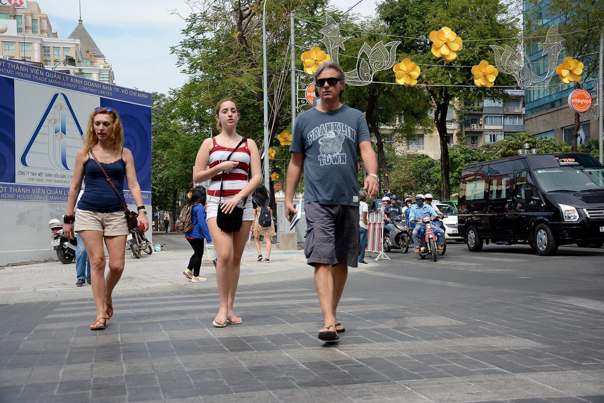 Nằm trong dự án xây dựng quảng trường và phố đi bộ, đường Lê Thánh Tôn (đoạn trước UBND TP.HCM) đã được lát đá cho ôtô, xe máy, xe đạp và người đi bộ qua lại.