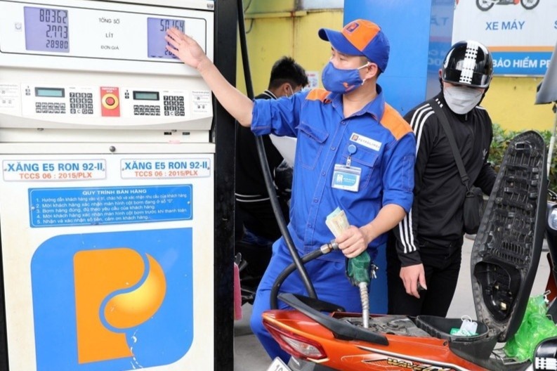| Mua, bán xăng tại điểm kinh doanh xăng, dầu Petrolimex. Ảnh: Trần Việt/TTXVN. |