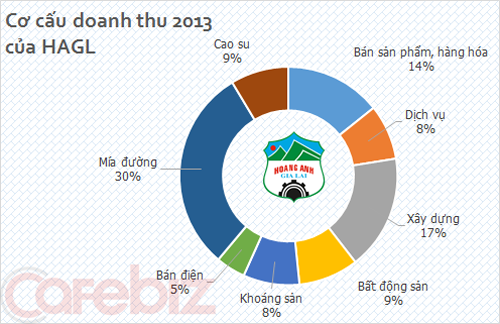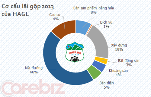 Tính chung cả năm 2013, HAGL đạt xấp xỉ 2.770 tỷ đồng doanh thu từ hoạt động sản xuất kinh doanh và lãi ròng sau thuế hơn 900 tỷ đồng. Trong đó, đóng góp nhiều nhất là mía đường, chiếm 30%.